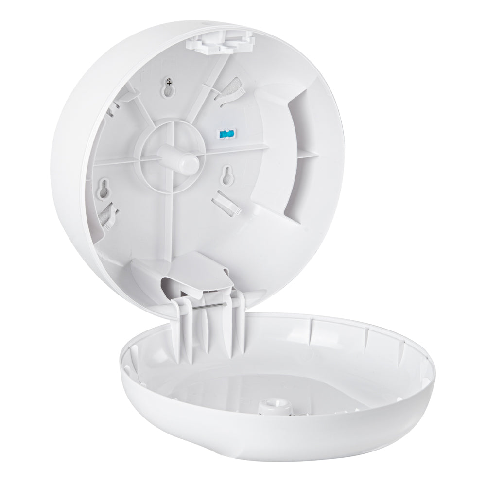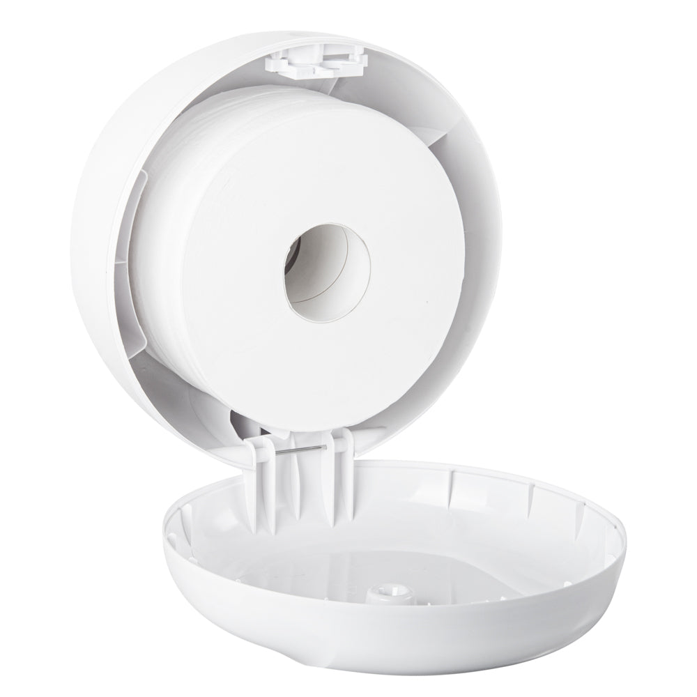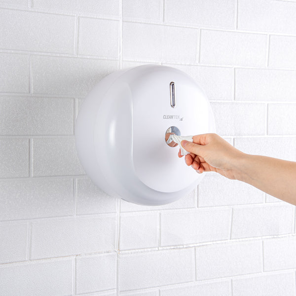 These toilet paper dispensers are available in either black or white colors to complement any washroom setting. Perfect for high-traffic restrooms or toilets.