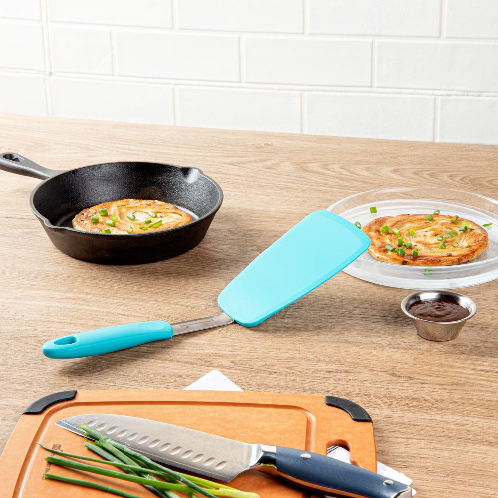 Conveniently use these silicone turners for flipping or turning pancakes, eggs, patties, or crepes. These solid spatulas easily reach the bottom of your pans.
