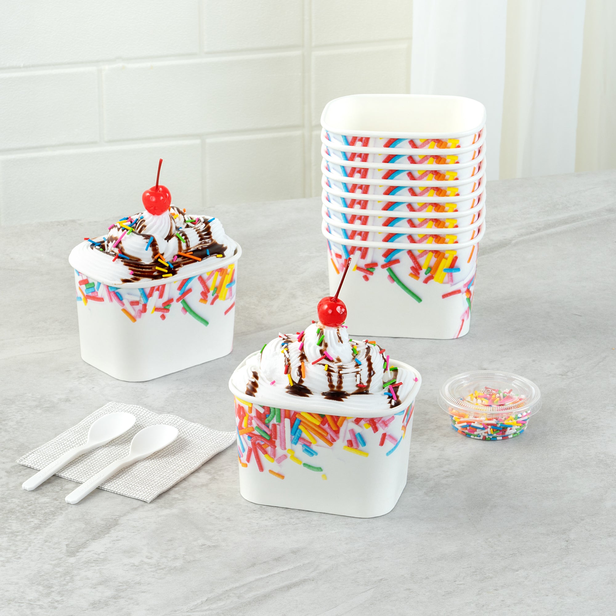 12 OZ SQUARE PAPER TO GO CUP - WITH FESTIVE SPRINKLES