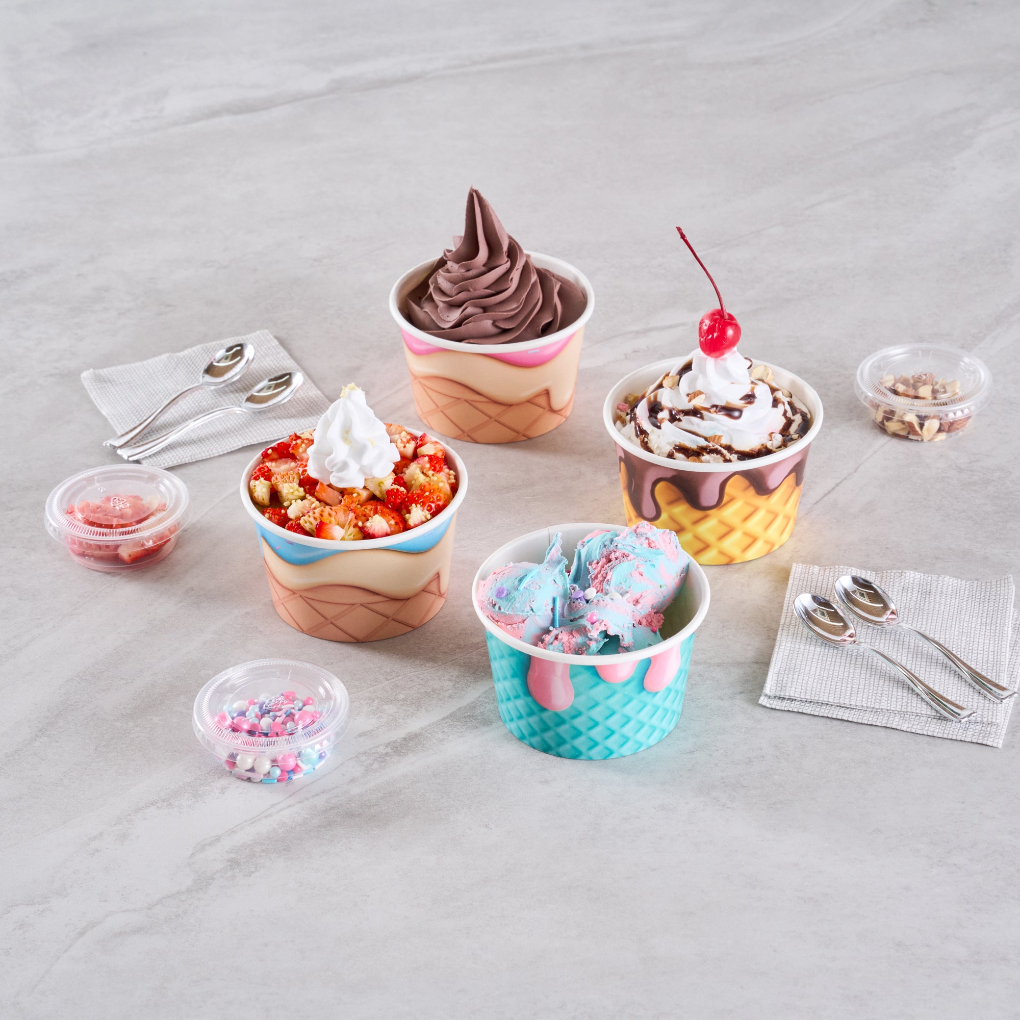 Enhance your dessert service with reliable spill prevention. The Coppetta Leak-Resistant 8 Oz Paper Cup features a double coated design that prevents liquid leakage, ensuring a mess-free experience for both operators and customers. With its 8-ounce capacity, this ice cream paper cup is perfect for serving moderate portions of ice cream, frozen yogurt, or soups without compromising on presentation. Thanks to its grease-resistant coating, this disposable dessert cup maintains its appearance when holding snack items and cakes, providing a visually appealing, durable option for any foodservice setting. Made from sturdy paper, these cups are both freezer-safe and hot food friendly, accommodating a variety of desserts and hot dishes. Measuring 3.75 inches in diameter, they fit conveniently into most storage spaces while supporting quick and efficient cleanup due to their recyclable material. Each order includes 200 Coppetta Leak-Resistant Paper Cups.