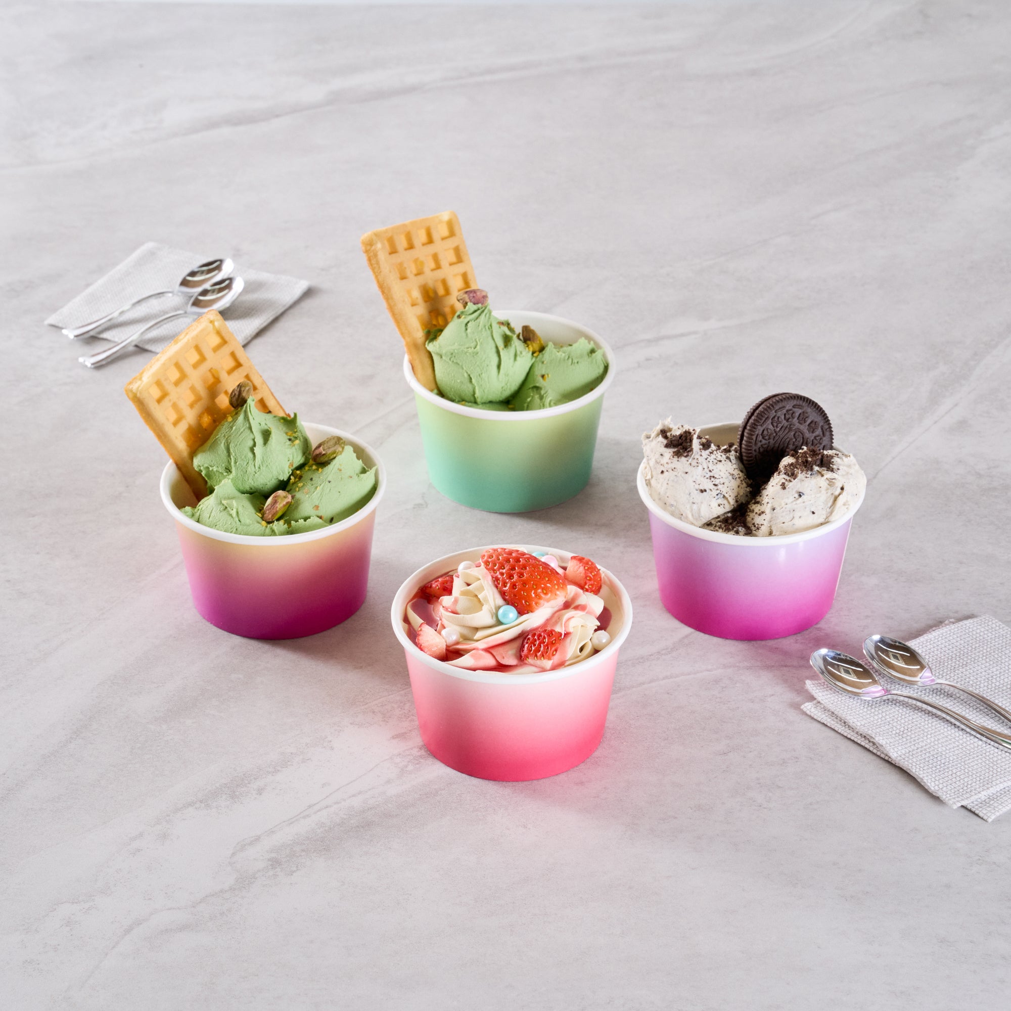 Enhance your service with versatile 8 oz disposable cups. The Coppetta Leak-Resistant Paper Cups are expertly crafted with a double-coated design to prevent leaks, ensuring your foodservice operations run smoothly without the hassle of messes. These paper soup cups are designed for multi-purpose use, accommodating both hot and cold dishes efficiently, from creamy soups to frozen delights. Made from high-quality paper, they feature a grease-resistant coating, maintaining the pristine presentation of snacks and cakes, crucial for catering events and busy cafes. Measuring 3.82 inches in height, these disposable ice cream cups are not only freezer-safe but also recyclable, aligning with sustainability efforts. Elevate your takeaway service with these reliable cups that promise functionality and style. Each order includes 200 Coppetta Leak-Resistant Paper Cups.
