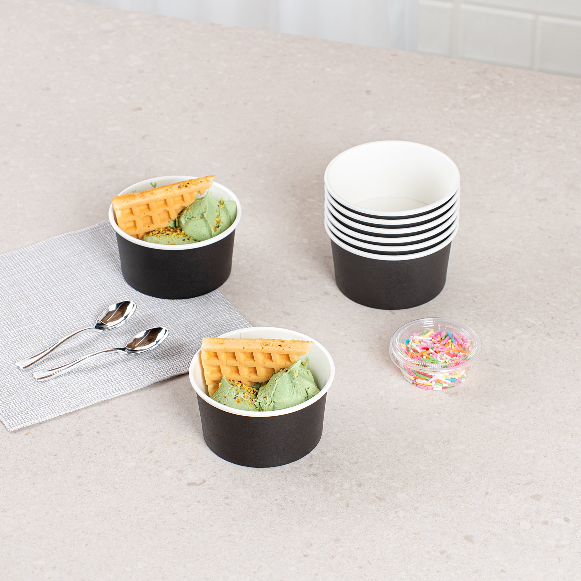 With a PE lining, these ice cream cups can hold oily or greasy substances, minimizing the chances of mess and offer a comfortable experience for enjoying your favorite frozen treats. No more sticky residue on your hands!