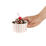 Great for serving hot or cold dishes! Crafted from thick paper, these dessert cups are durable and ideal for serving ice cream at a birthday party or warm chili at a cookoff.