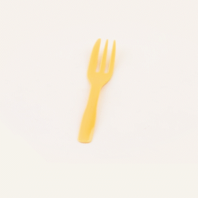 BABY YELLOW PLASTIC CAKE FORK WITH KNIFE EDGE