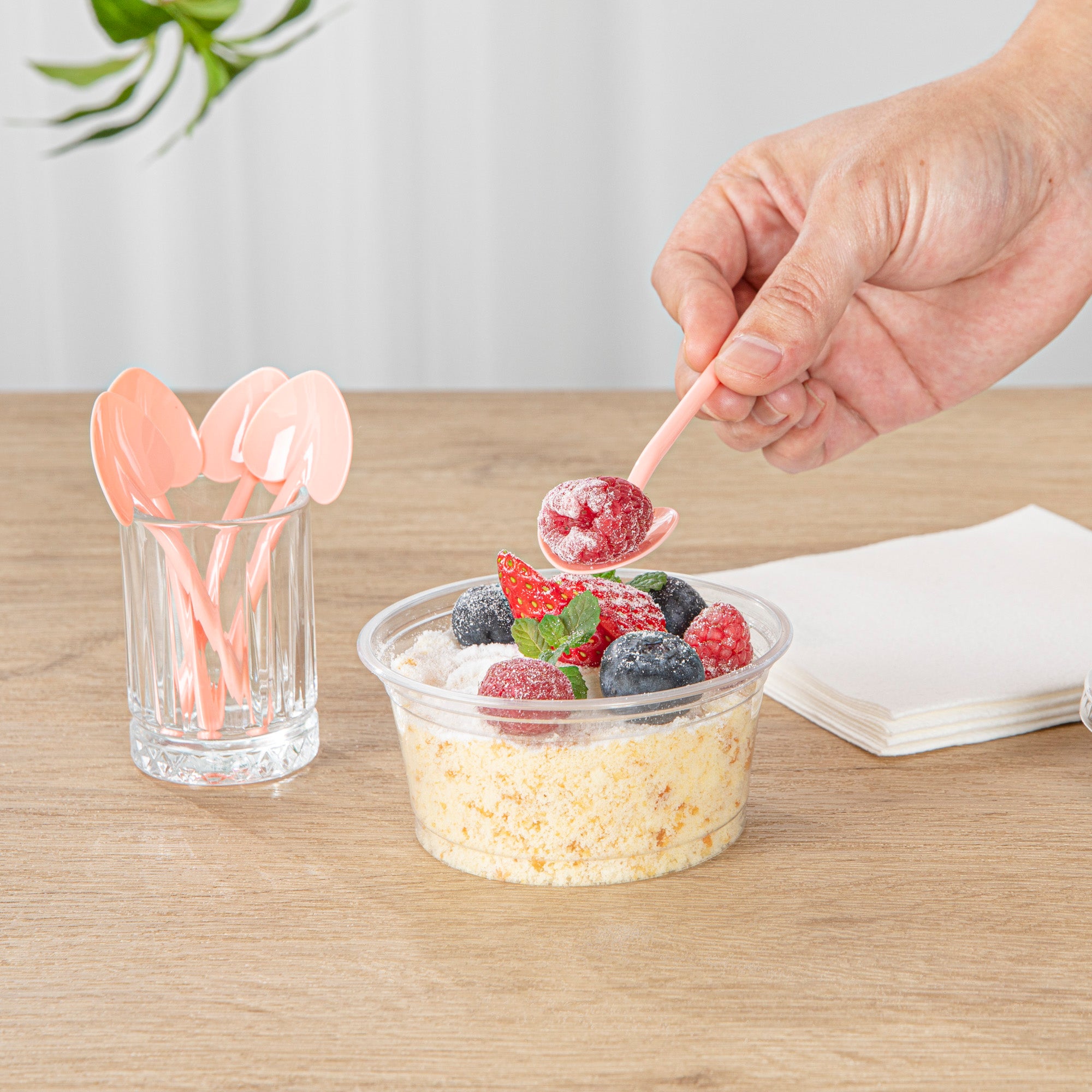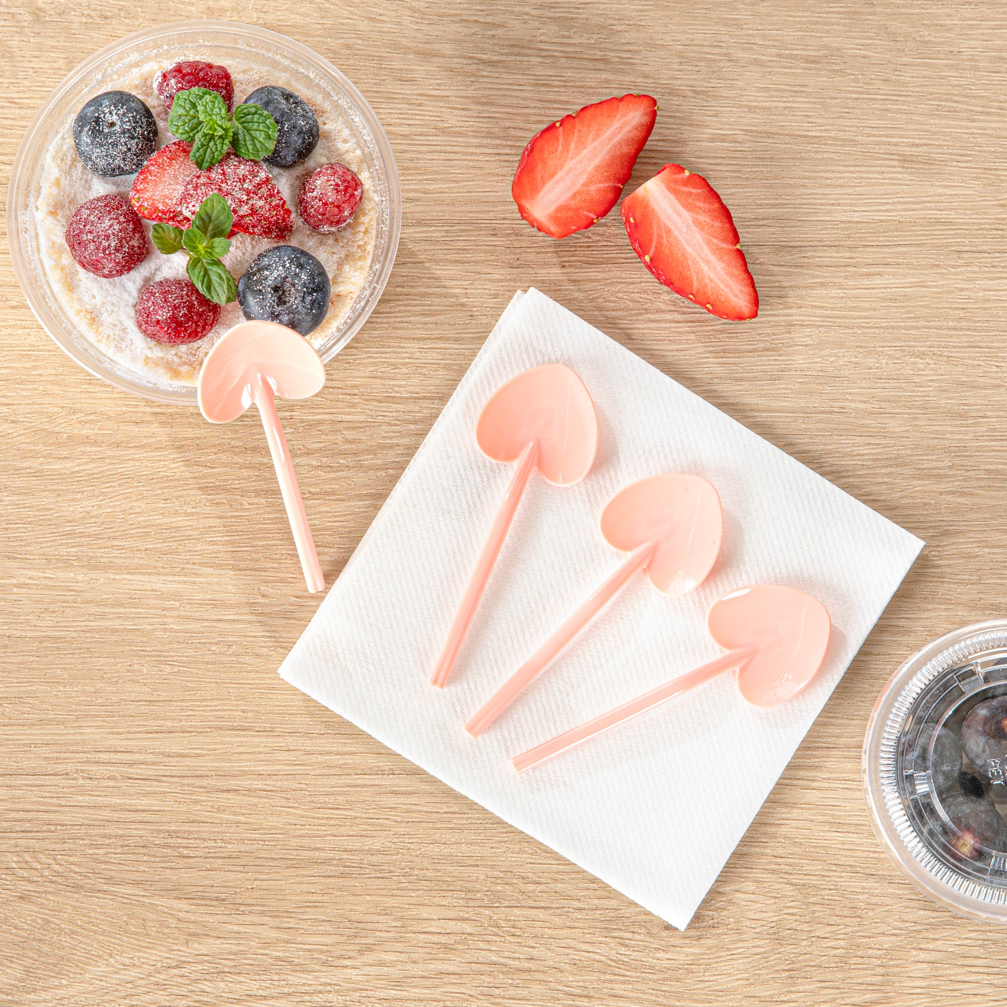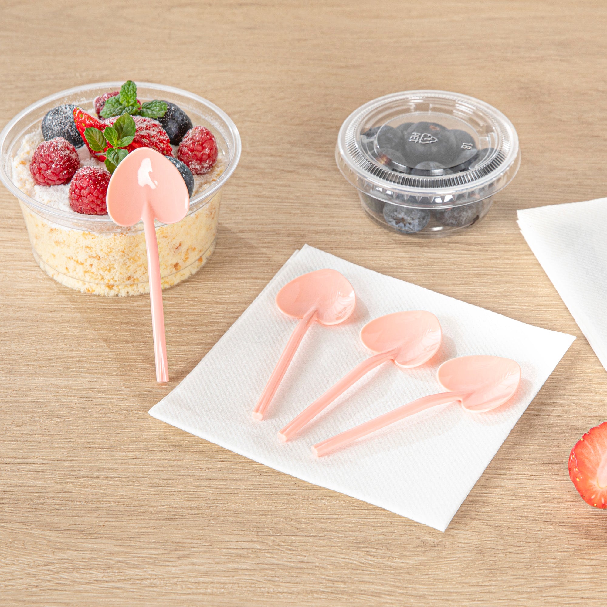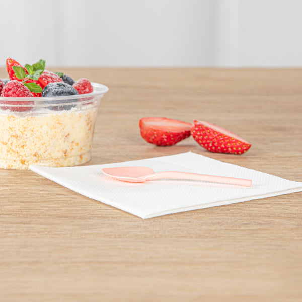Add a touch of love and charm to your desserts with our Coppetta Coral Plastic Love Shovel Spoons. Featuring a trendy coral pink finish, these frozen yogurt spoons are ideal for ice cream parlors and artisanal gelaterias. The heart-shaped shovel head of these heart shovel spoons effortlessly scoops up ice creams. With their sturdy plastic handle, these recyclable dessert spoons are built to stay strong against big scoops of ice cream and hefty spoonfuls of gelato. These coral ice cream spoons are disposable for easy cleaning. Measuring 3.5 inches long by 1.25 inches wide, you can use these heart-shaped spoons as stylish mini-tasting spoons or serve alongside your delectable desserts. Sold in a 500 count box.