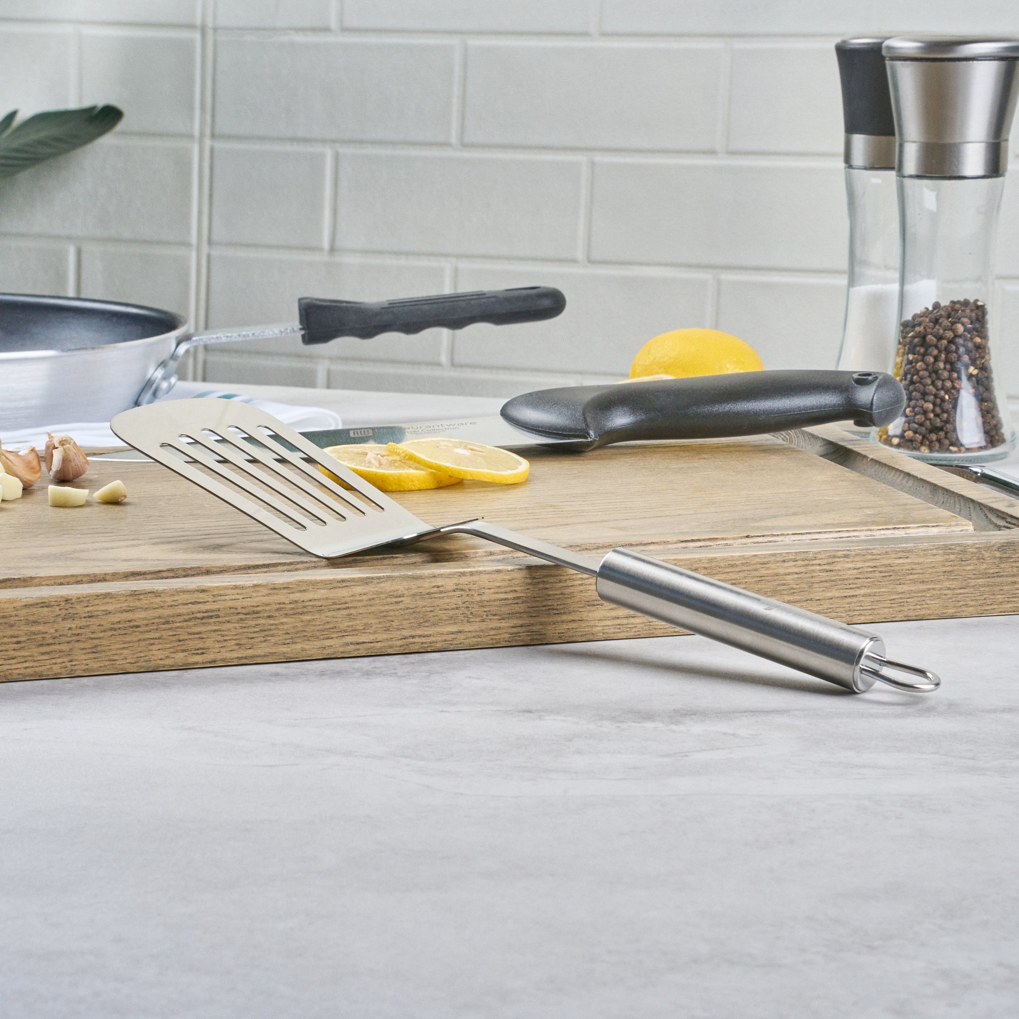 - Slotted design drains excess oil or liquid with ease