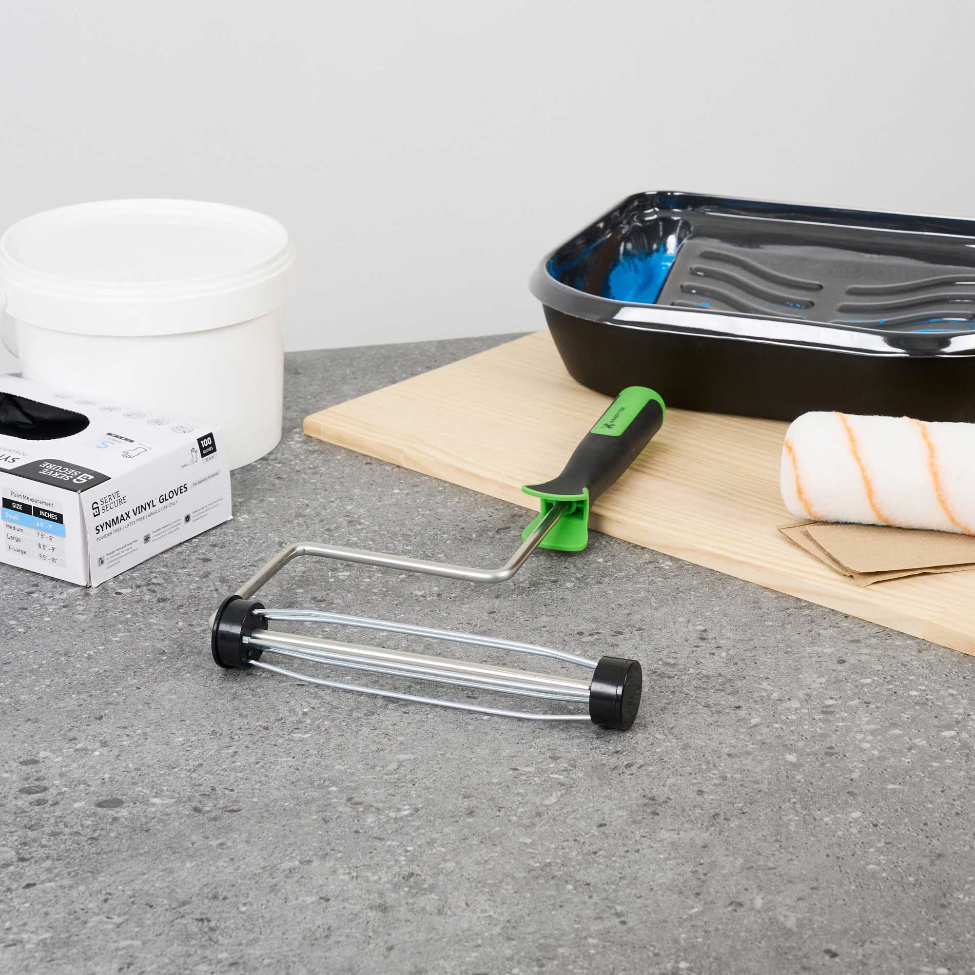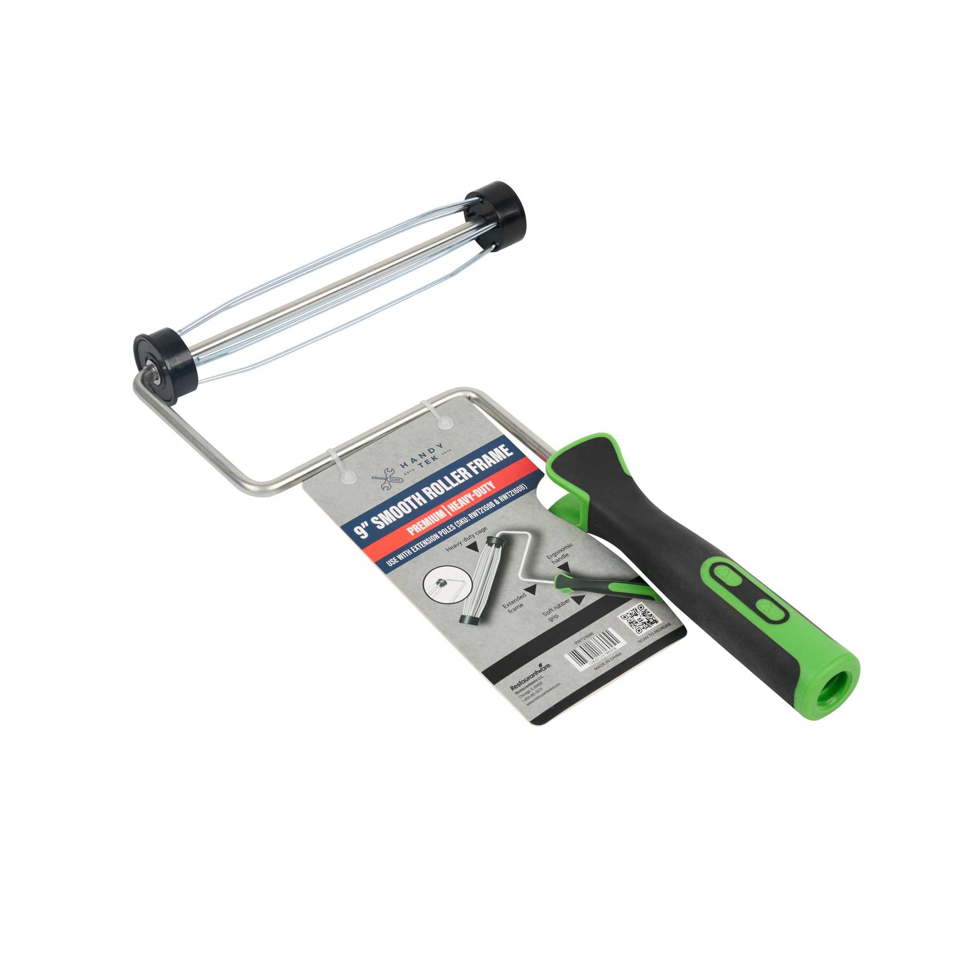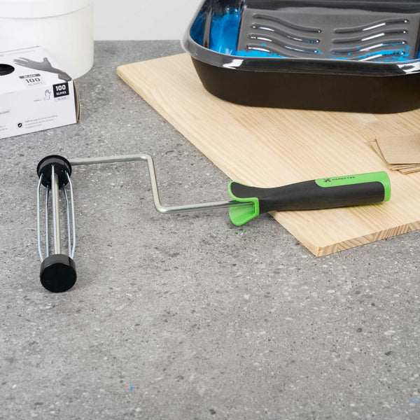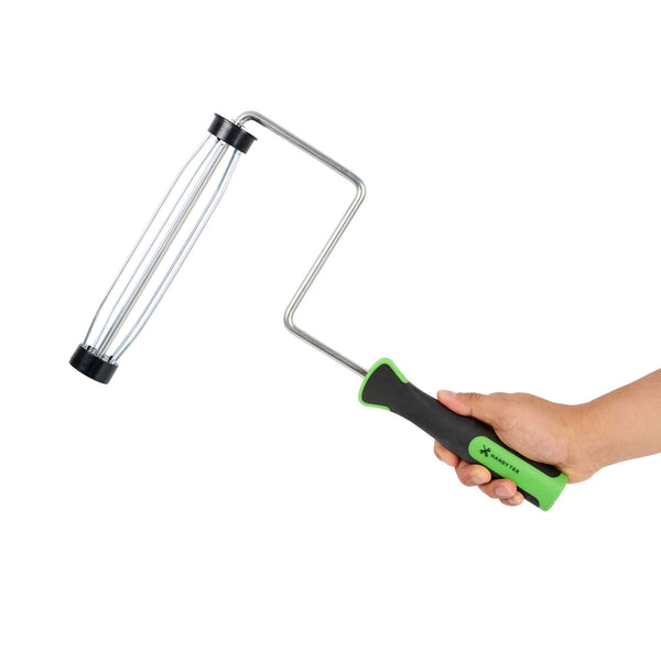 Elevate your painting projects with our Handy Tek Smooth Roller Frame, designed to provide a seamless and efficient painting experience. This roller frame features enclosed bearings, ensuring smooth rolling with minimal friction and noise, making it the ideal paint handle frame for any task. Pair this painting roller frame with Handy Tek roller covers and an extension pole for smooth coverage across walls, ceilings, and hard-to-reach areas in restaurants or cafés. Crafted with a heavy-duty 5-wire chrome-plated cage, this roller holder securely grips roller covers, resisting rust and bending even after multiple uses. The soft rubber grip handle of this coating tool frame offers exceptional comfort, allowing for better control and reduced fatigue during extended painting sessions. Measuring 15.55 inches in length by 10.04 inches in width by 1.58 inches in height, this roller frame is built for versatile use. Sold in a 24 count box.