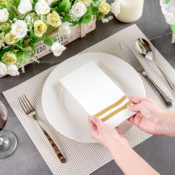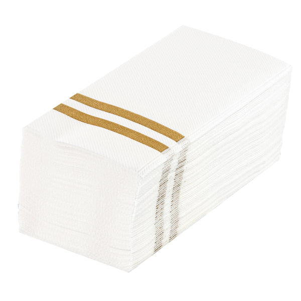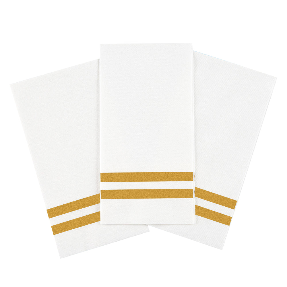 GOLD STRIPED PAPER LINEN-FEEL GUEST TOWEL/NAPKIN - AIR LAID