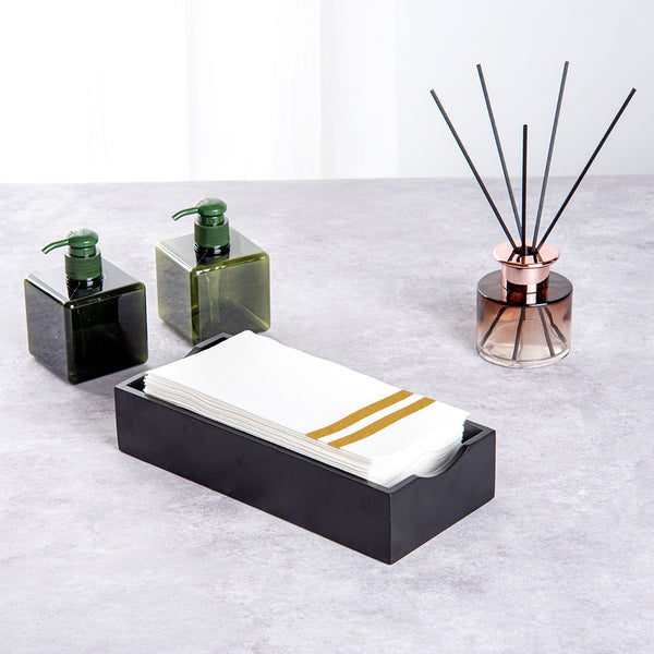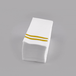 Offer your guests high-end comfort with our Luxenap Rectangle Gold White Paper Linen-Feel Guest Towels / Napkins. Made from cellulose fibers, these airlaid paper napkins are durable and provide a cloth feel, making them an efficient and sustainable alternative to traditional paper napkins. These guest towels have high liquid absorption properties to let you easily clean up accidental spills with a single napkin. With a natural look and drape of linen, these buffet napkins are ideal to be used as hand towels, as they do not itch or draw the skin. Featuring a gold-striped design, these table napkins elevate the table setting for your guests. These striped paper napkins are commercially compostable and biodegradable, making them eco-friendly. To avoid a time-consuming cleaning process, these quilted, single-ply napkins are easily disposable, unlike traditional linen napkins that need regular laundering. Prefolded with a ¼ fold, these napkins for restaurants can also be used to wrap silverware and offer guests a sanitary experience. These rectangular dinner napkins measure 8 inches long by 4 inches wide when folded and 15.75 inches long by 8 inches wide when unfolded. Shipped in a 2,000 count box. This item will only degrade outside of the traditional solid waste stream.
