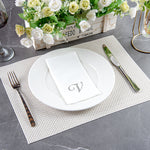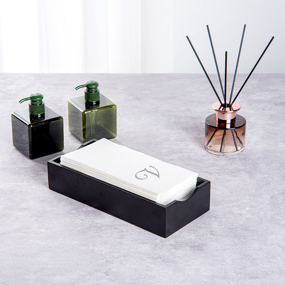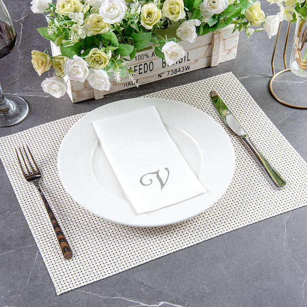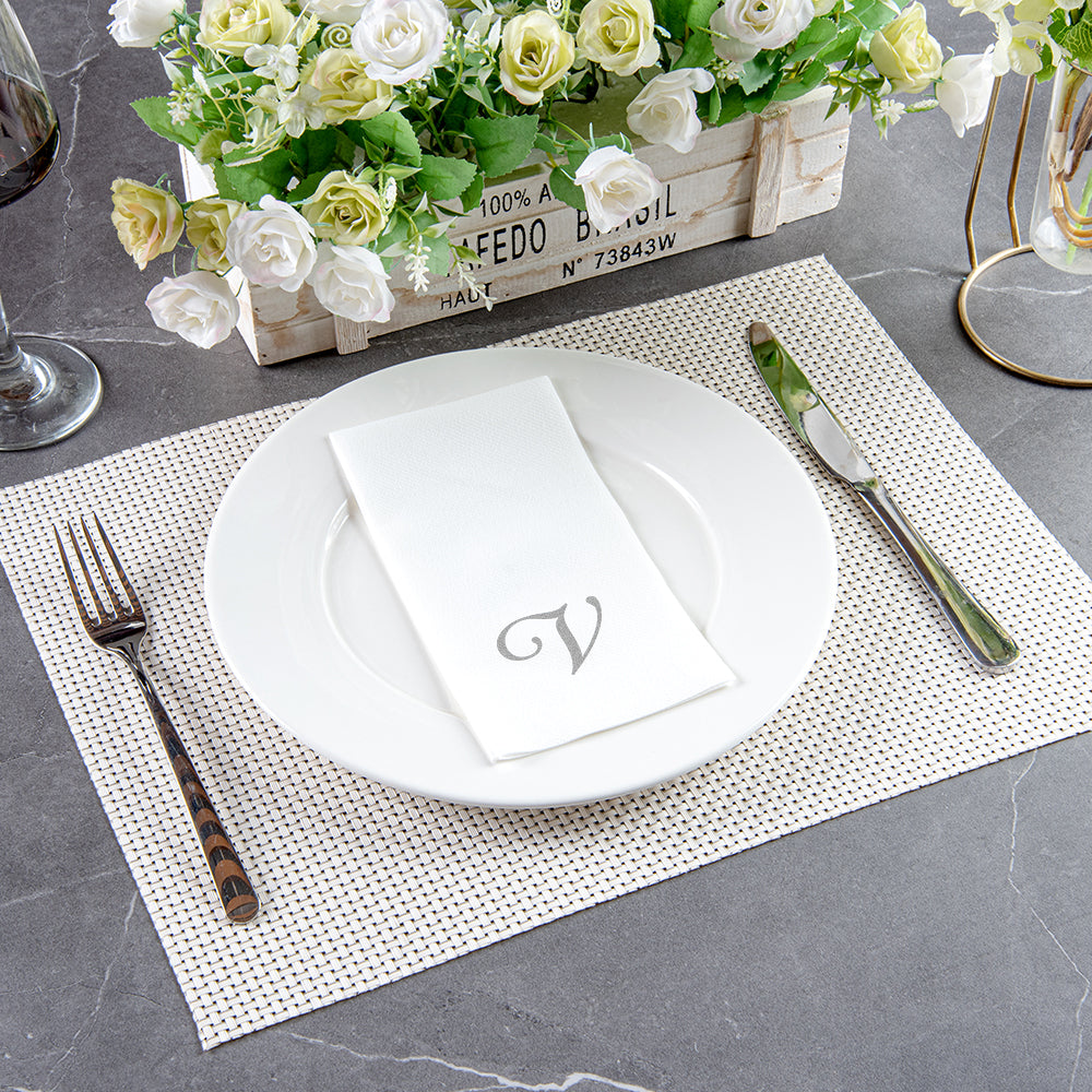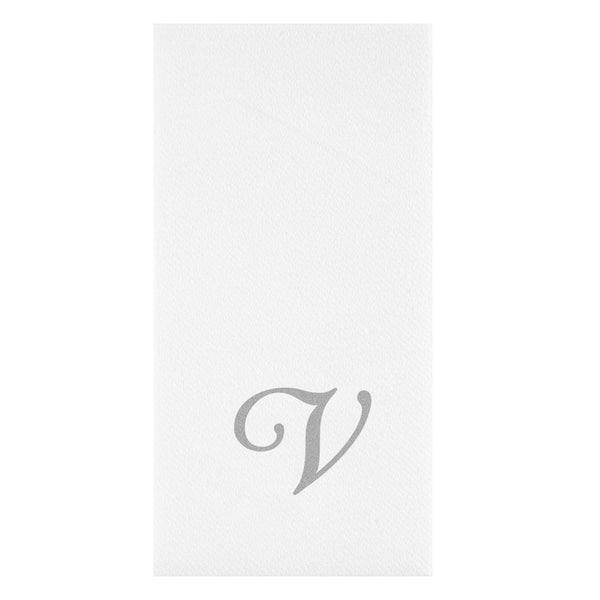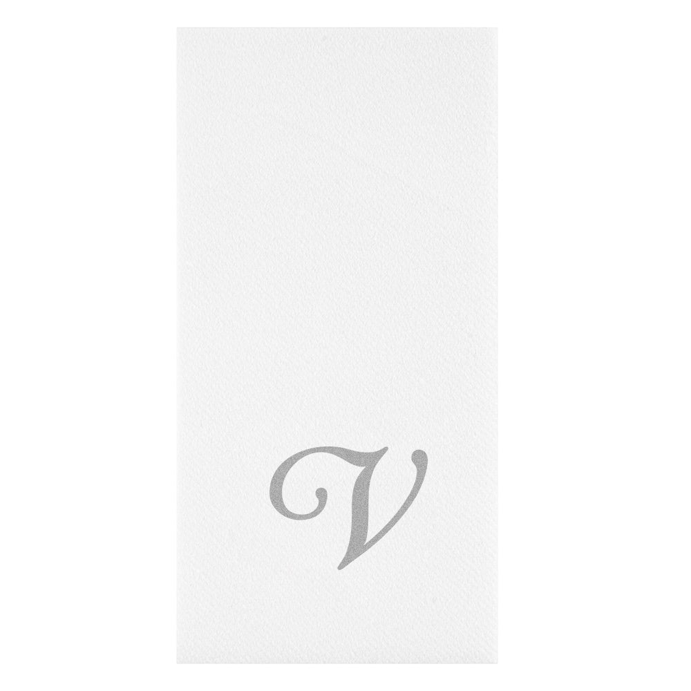 SILVER LETTER V PAPER LINEN-FEEL GUEST TOWEL/NAPKIN - CURSIVE FONT