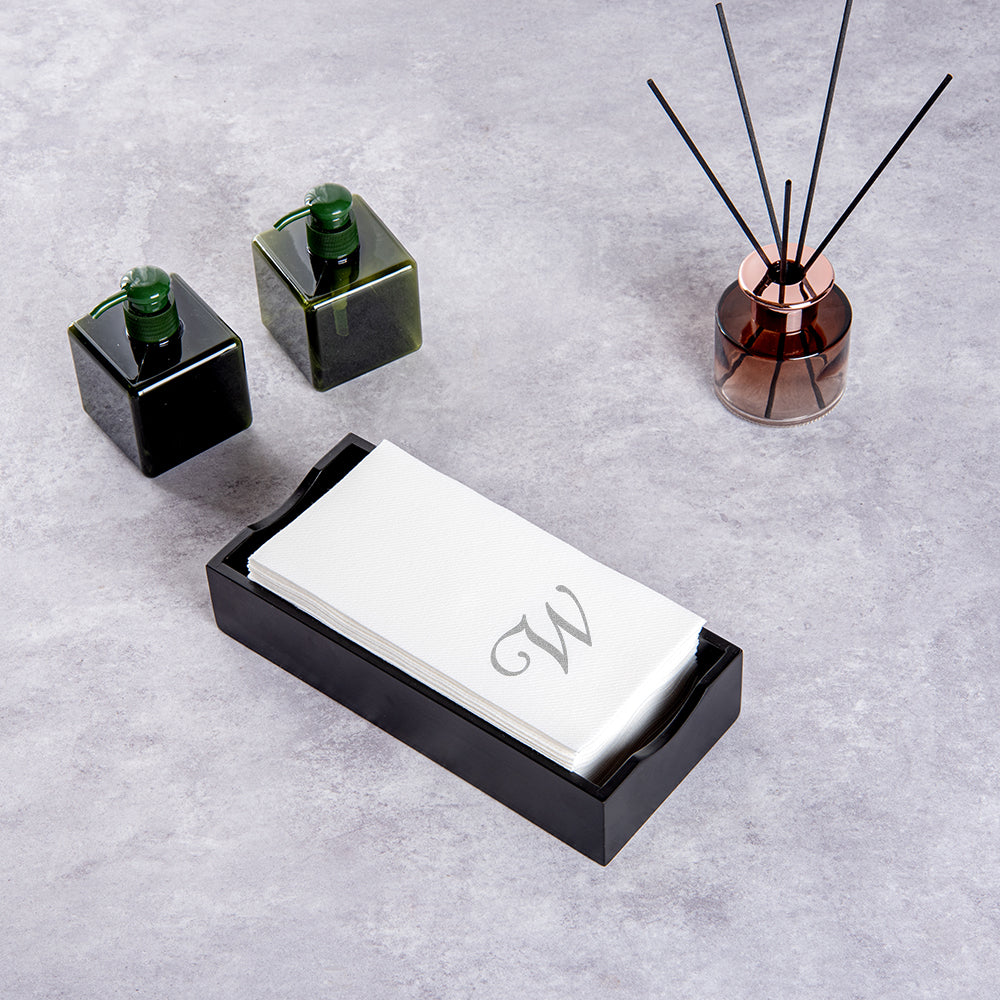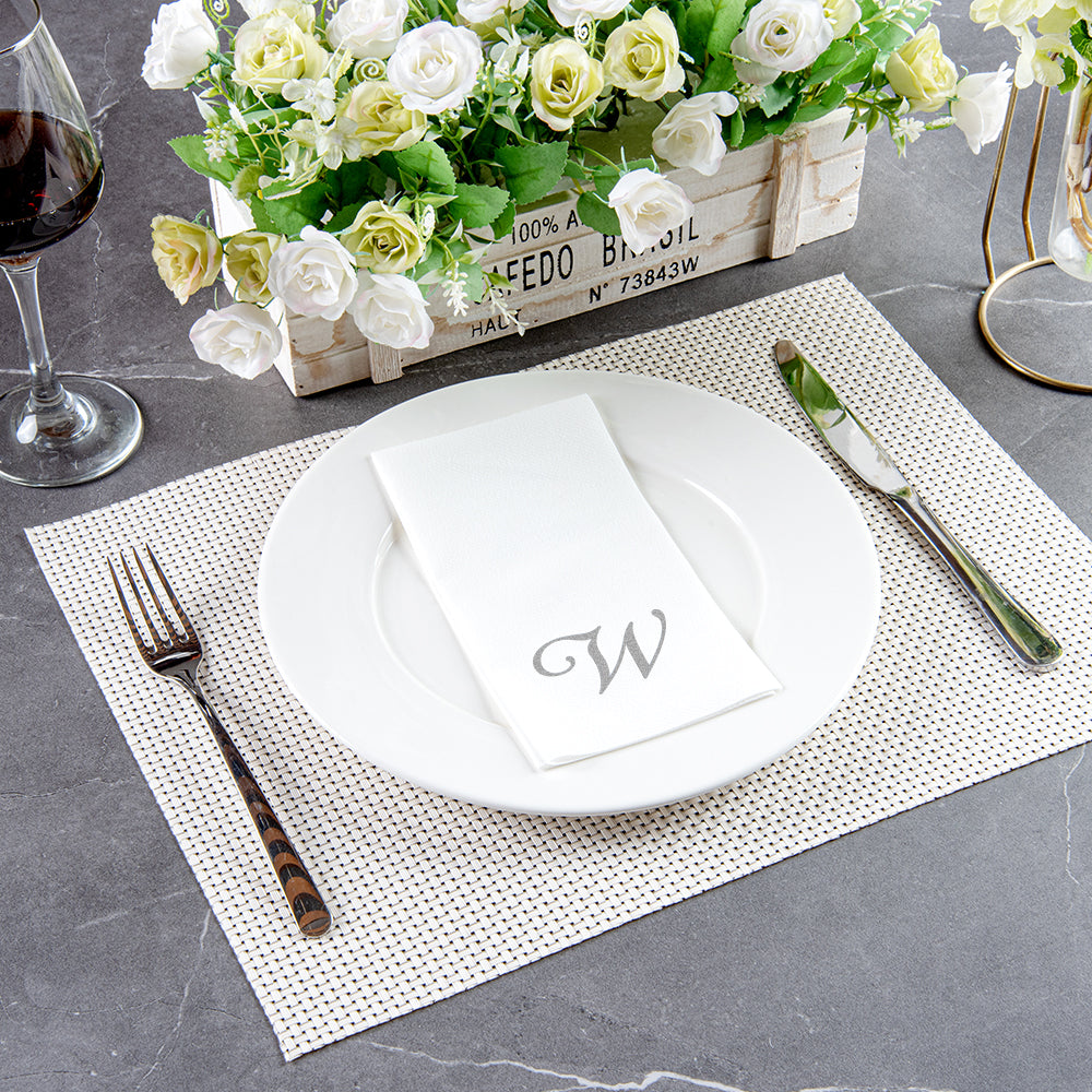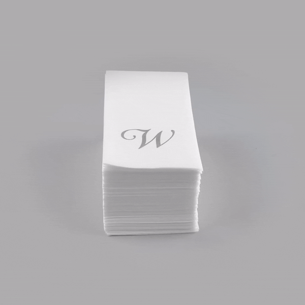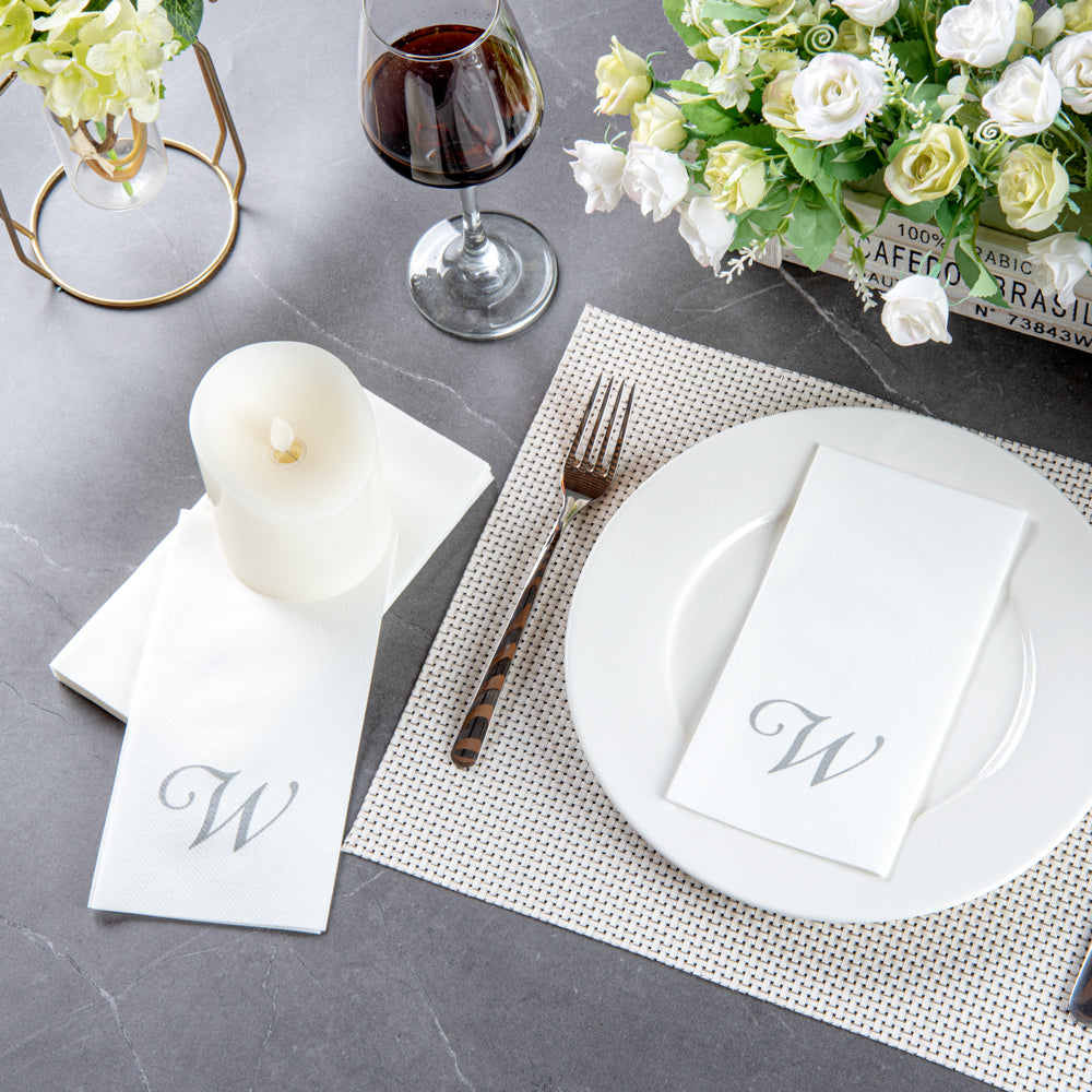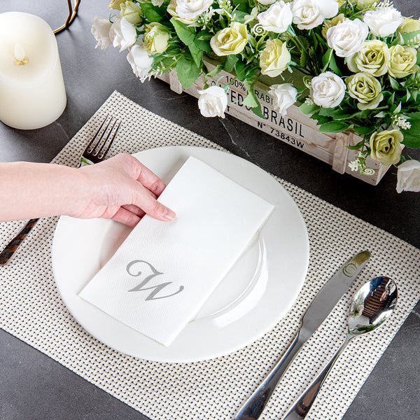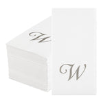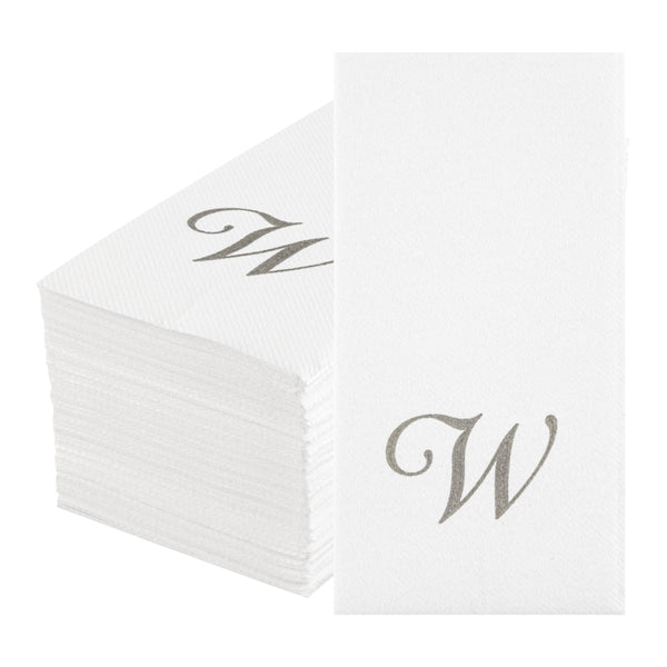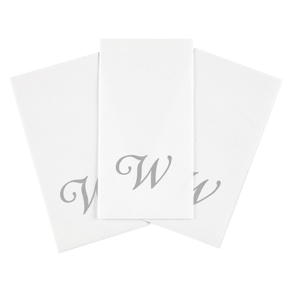 SILVER LETTER W PAPER LINEN-FEEL GUEST TOWEL/NAPKIN - CURSIVE FONT