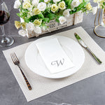 Luxenap Rectangle Silver Letter W White Paper Linen-Feel Guest Towel / Napkin - Air Laid, Cursive Font - 15 3/4