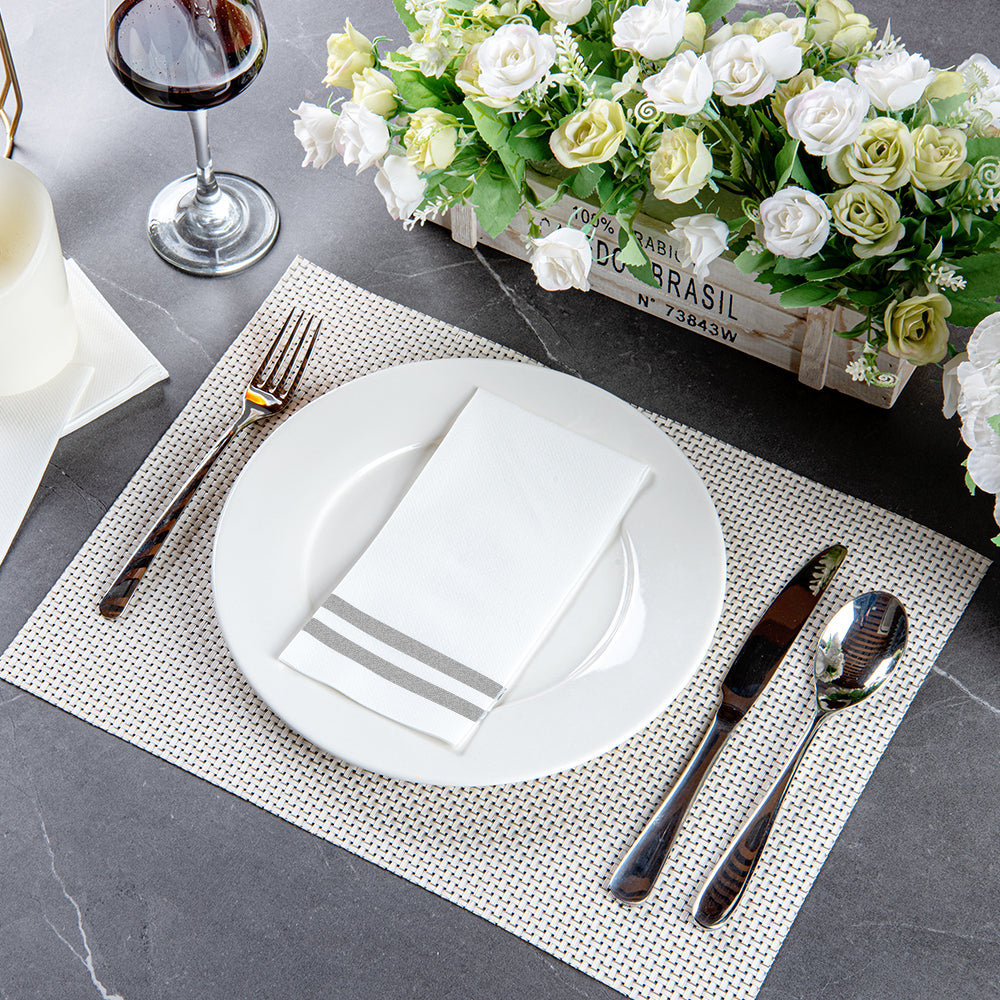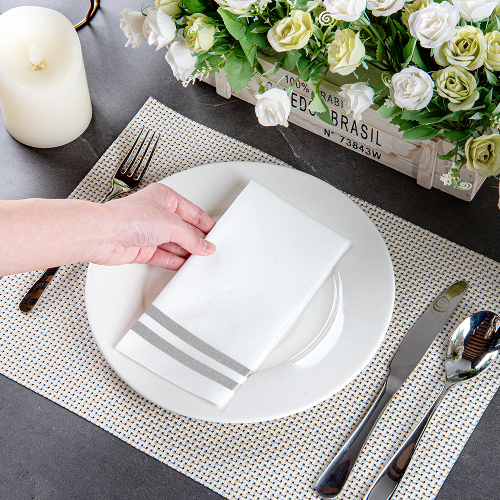 SILVER STRIPED PAPER LINEN-FEEL GUEST TOWEL/NAPKIN - AIR LAID