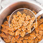 - Mesh scoop allows for quick removal of food items from boiling water or hot oil