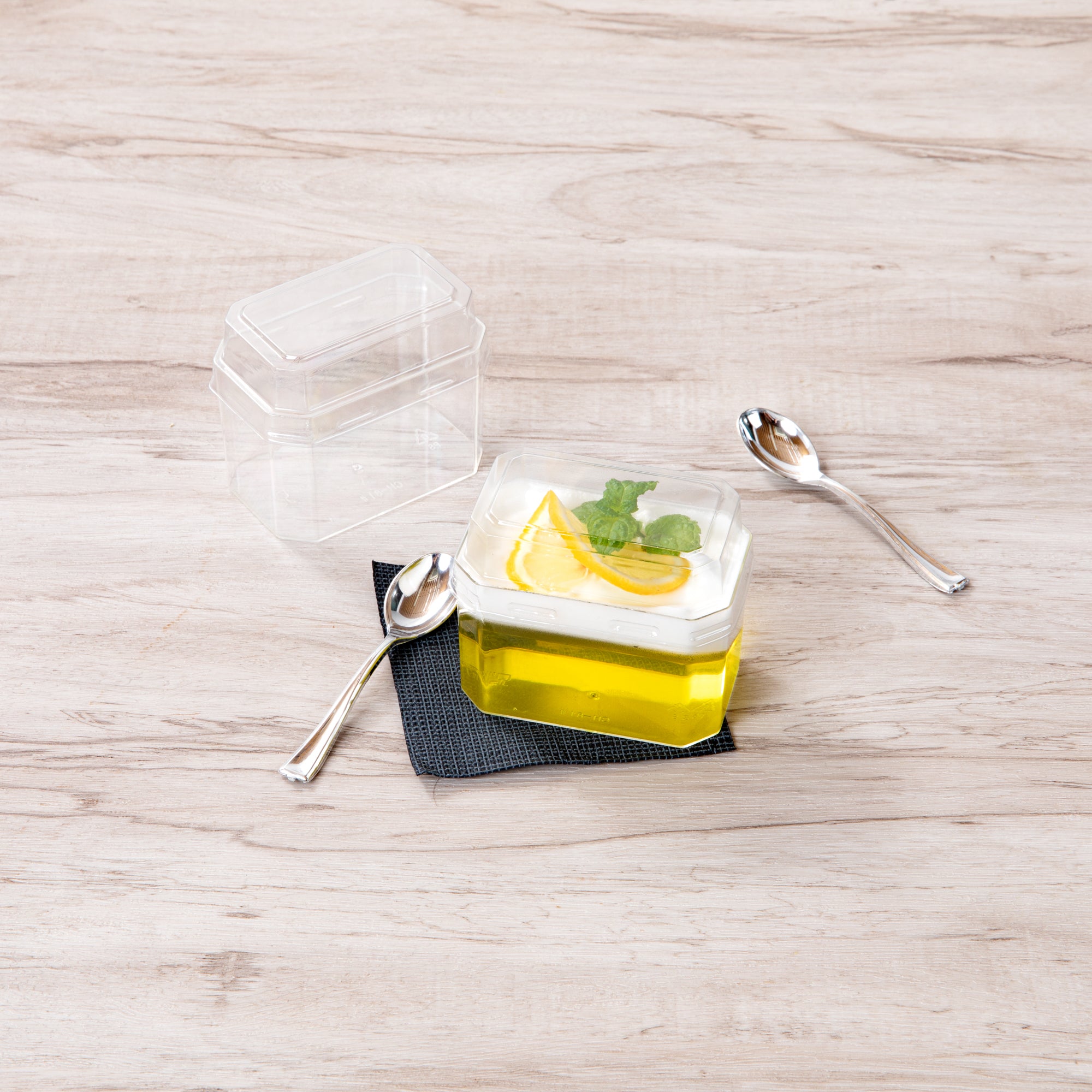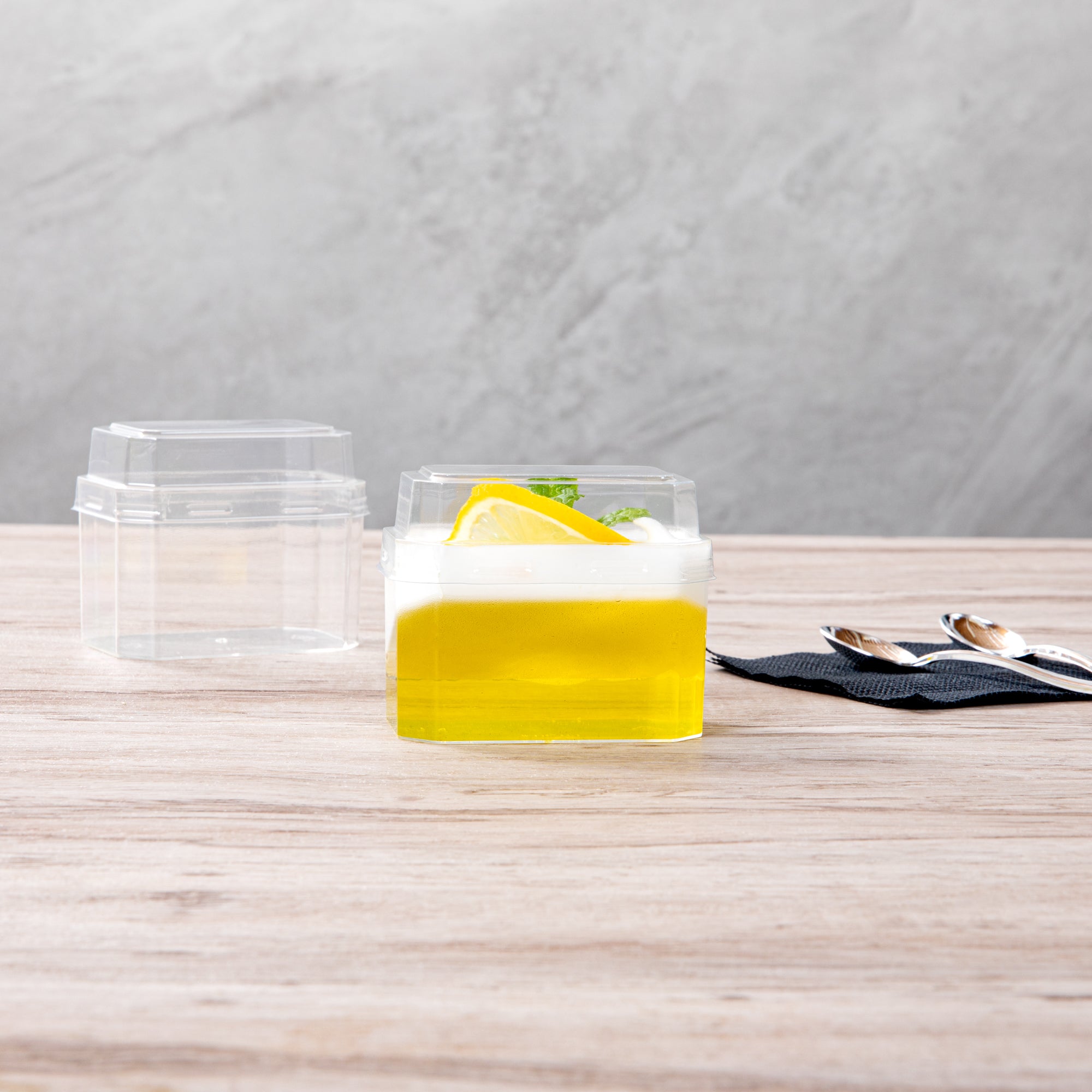 3 OZ RECTANGLE CLEAR PLASTIC DESSERT CUP - WITH LID