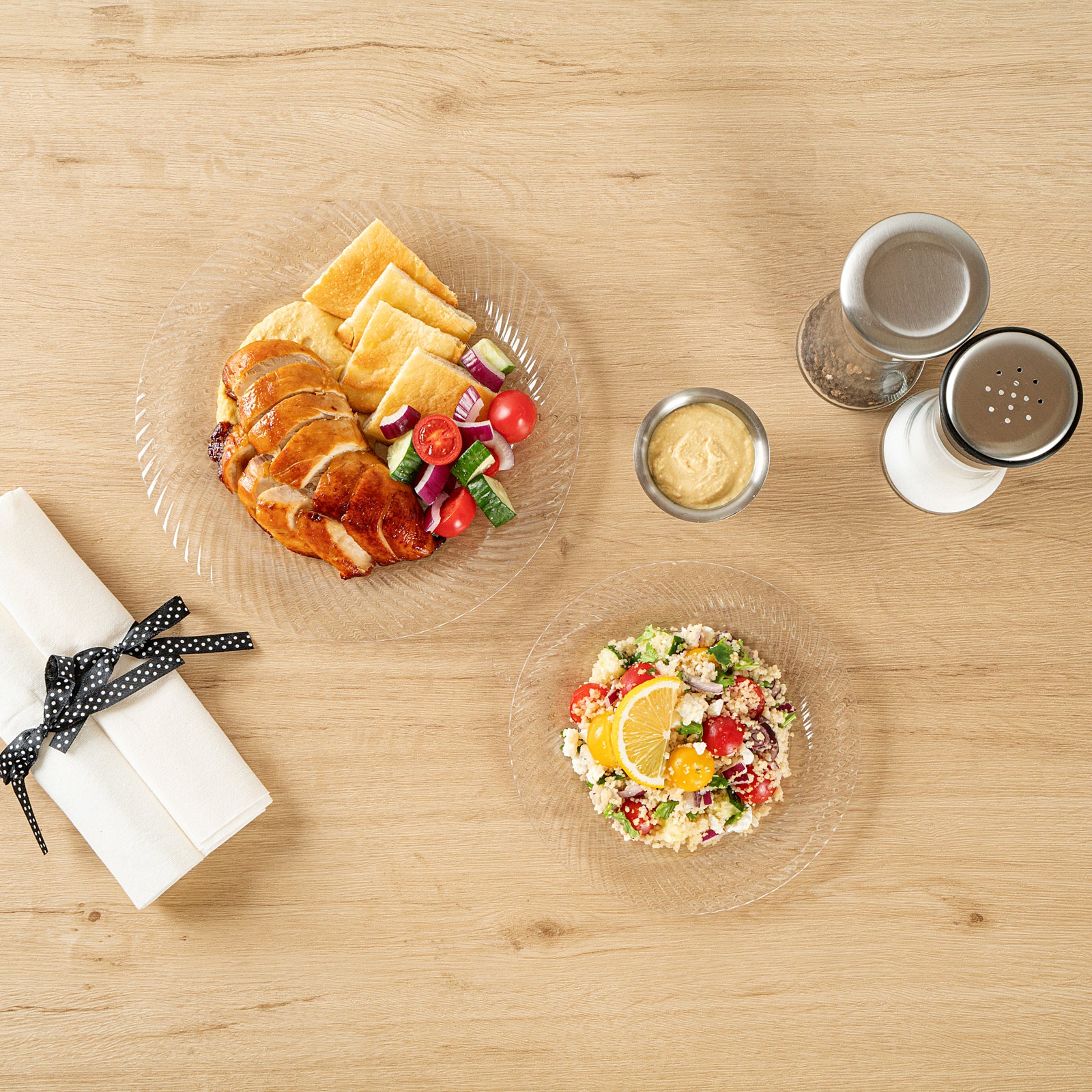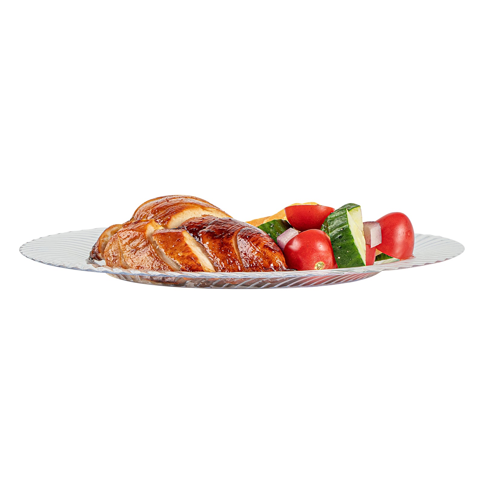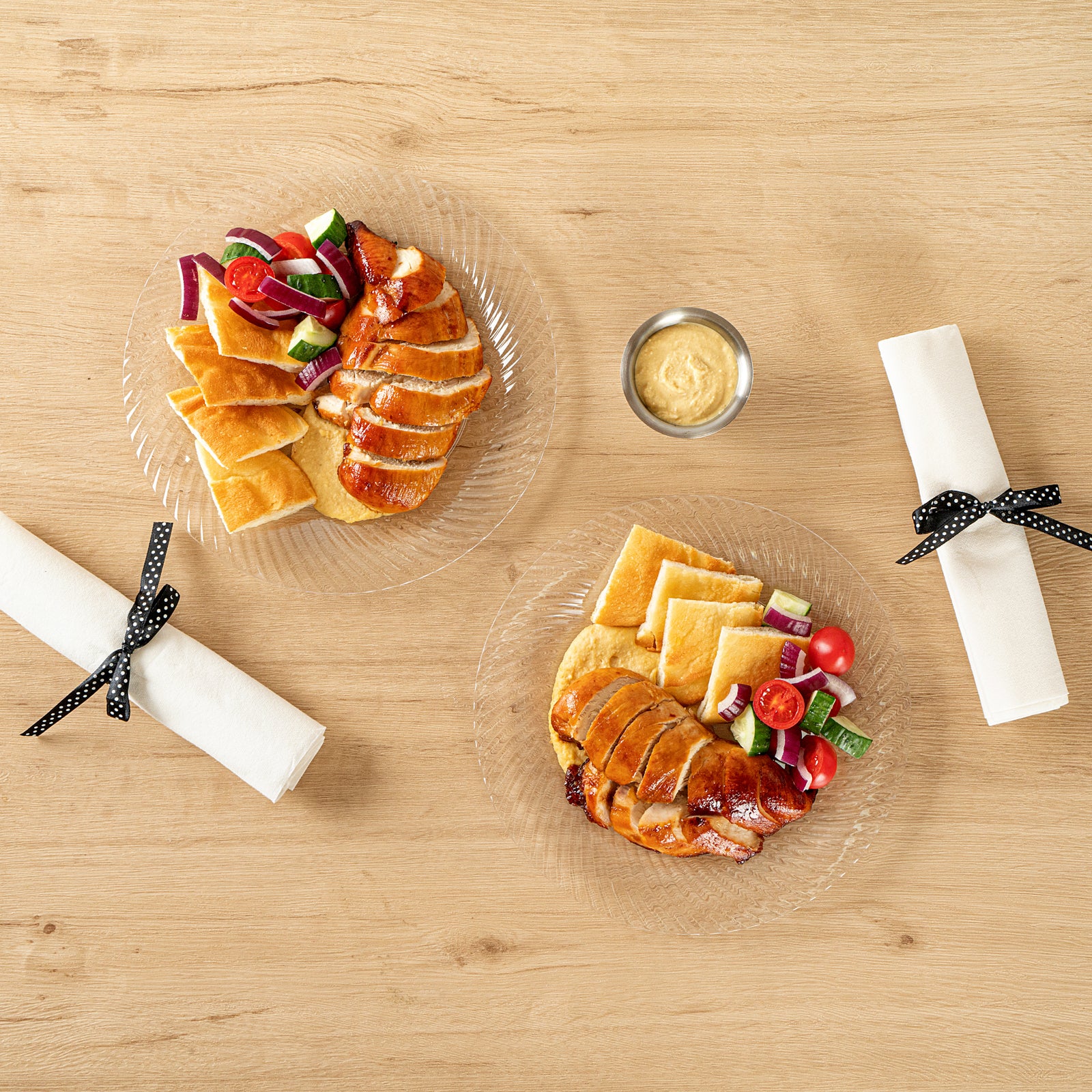 Elevate your table setting with our Moderna Round Clear Plastic Wave Plates. Crafted from durable PS plastic, these dinner plates are robust enough to handle even the heaviest foods. Adorned with an exquisite wave pattern, these plates bring a touch of elegance to your party decor. These premium plastic plates are easily recyclable, minimizing the environmental impact of your event. The heavy-duty design of these dinner plates are greaseproof, keeping your dining experience mess-free. These clear plastic plates can withstand temperatures up to 150F, ensuring optimal serving of warm and cold foods. To minimize washing dishes, these party plastic plates are disposable. Fashioned with a clear finish, these unique plates elevate your food presentation. Measuring 9 inches in diameter, these disposable plates for wedding are ideal for serving all kinds of starters, entrees, and desserts. Shipped in a 200 count box.