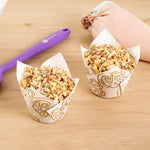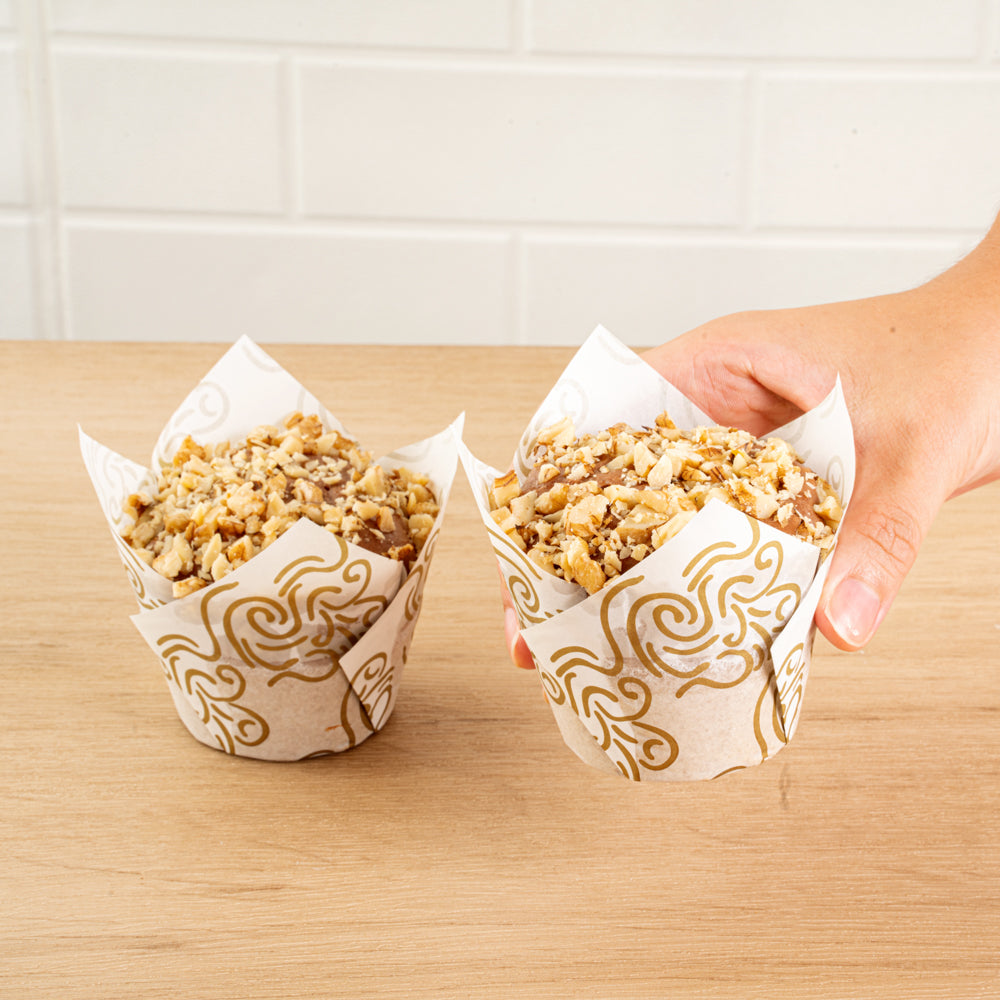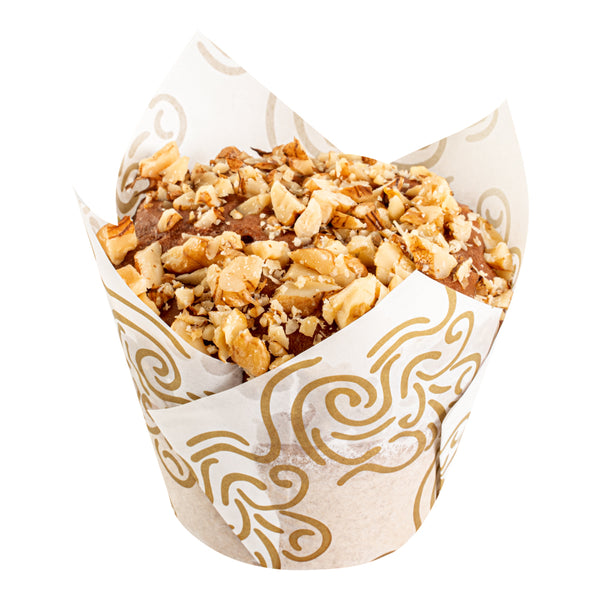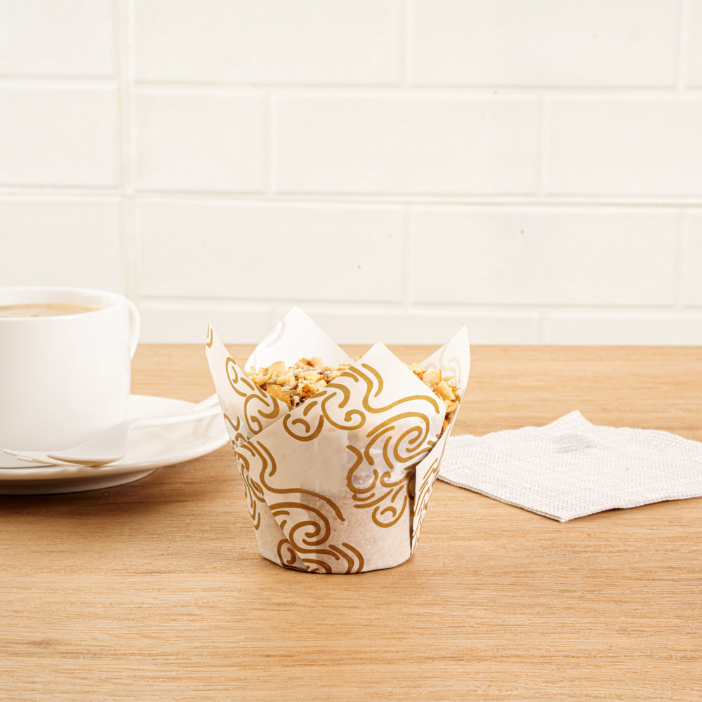 Display your culinary creations with confidence. Panificio Greaseproof Tulip Baking Cups feature a greaseproof coating that ensures easy dessert removal, making them ideal for busy bakeries that rely on efficient operations. These tulip baking cups are crafted from heavy-duty paper, which maintains its shape during baking, allowing your treats to look as perfect as they taste. The elegant tulip design elevates dessert presentation, providing an eye-catching display that enhances customer satisfaction. With dimensions of 3.35 inches and capacity of 3.5 ounce, these cupcake liners are designed to fit standard-sized muffins and cupcakes, ensuring versatility in your kitchen. Made from recyclable, oven-safe paper, these greaseproof muffin wrappers are not only functional but also environmentally friendly, appealing to eco-conscious consumers. Elevate your dessert offerings and streamline your baking process with these reliable baking essentials. Sold in a 500 count box.
