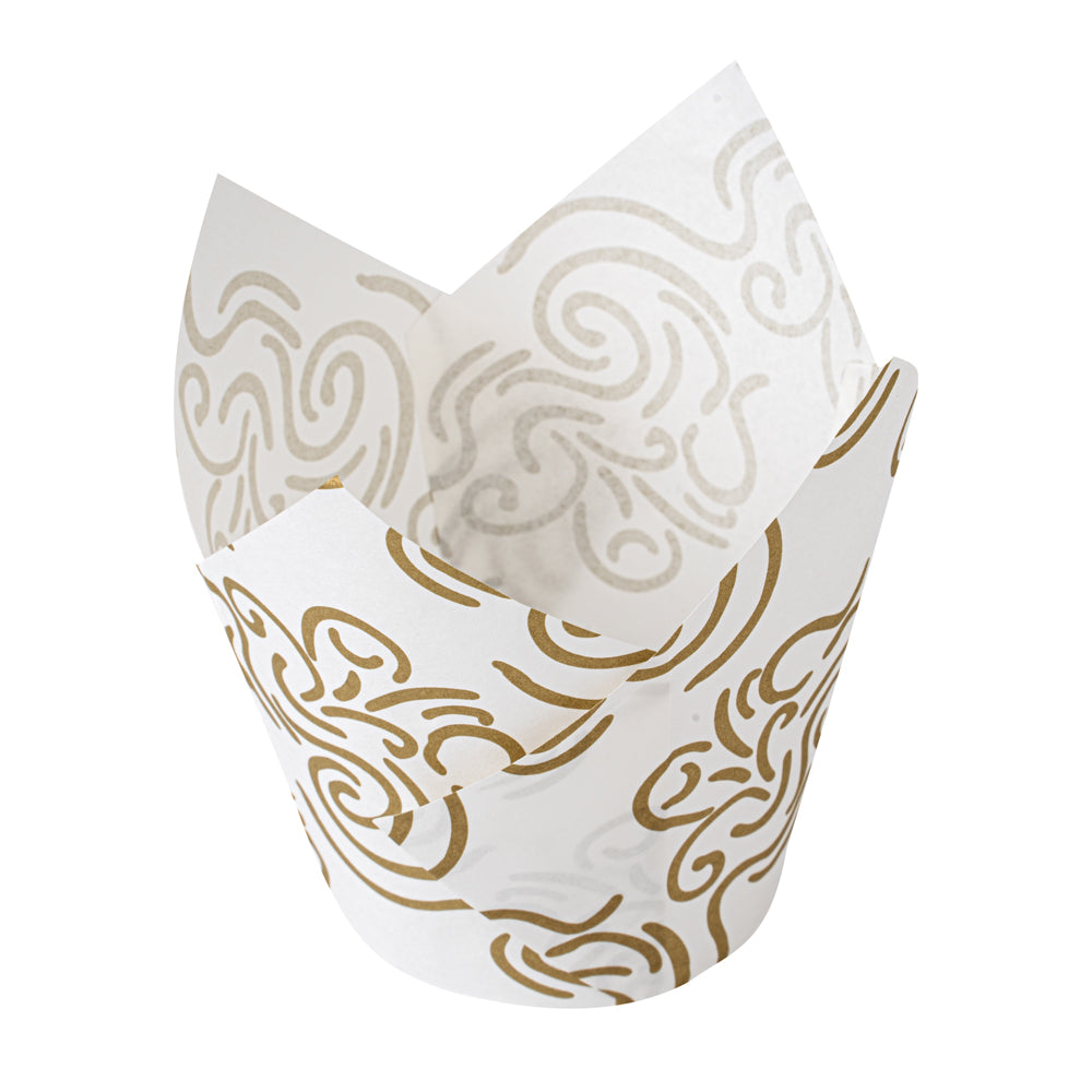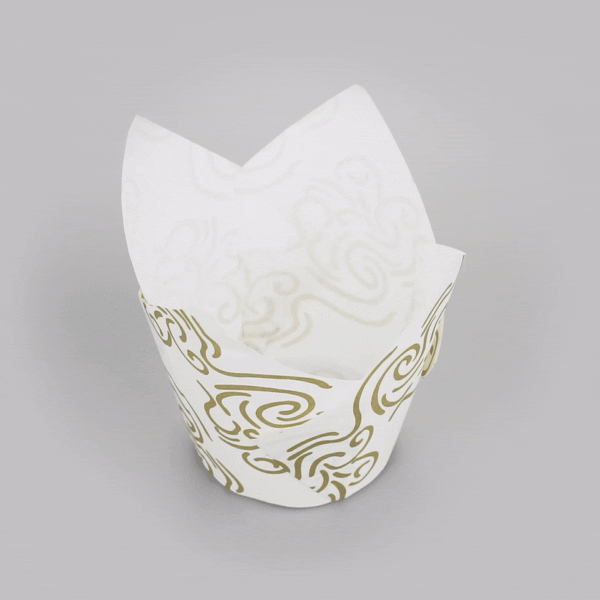 3.5 OZ WHITE PAPER FLORAL TULIP BAKING CUP - GREASEPROOF