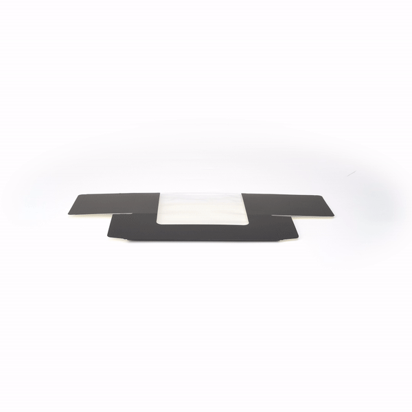 Elegantly showcase sweets using our Pastry Tek Black Paper Pastry / Cake Boxes. Crafted with a clear window, these bakery boxes offer optimal visibility to efficiently display and identify desserts. To prevent oils from seeping through, these cookie boxes with windows are grease-resistant. These paper cake boxes are recyclable for a simple way to reduce unnecessary waste in your establishment. With a black finish, these cake boxes provide a refined look while highlighting the packaged baked goods. These cupcake boxes are shipped flat for space-saving storage in your cafe or bakery and are easy to assemble. The black cake boxes measure 9.75 inches in length by 4.75 inches in width by 4 inches in height. Sold in a 100 count box.