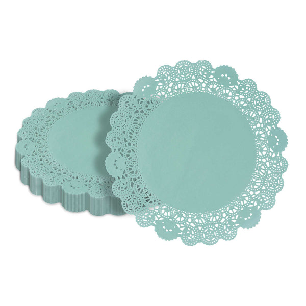 Enhance your dessert displays with our Pastry Tek Round Teal Paper Doilies, the perfect addition to any food presentation. Crafted from high-quality paper, these lace doilies provide exceptional durability, allowing you to display desserts at bakeries or catered luncheons without tearing or losing their structural integrity. Designed with intricate lace-like details, these table doilies increase the visual appeal of food presentations while serving as functional barriers that protect surfaces and absorb moisture. The teal finish of these colored paper doilies is versatile, complementing a wide range of table settings and themes, making them ideal for various events and occasions. Perfect for busy hosts and food establishments, these disposable paper doilies eradicate the hassle of post-event cleanup, offering a convenient and time-saving solution. These small doilies are perfect for use under cupcakes, petit fours, macarons, and other small treats. Measuring 12 inches in diameter, these lace doilies fit perfectly on standard serving trays and dessert displays. Sold in a 4,000 count box.
