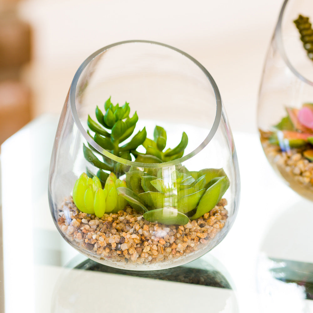 FAUX SUCCULENT ARRANGEMENT - INCLINE EDGE GLASS TERRARIUM