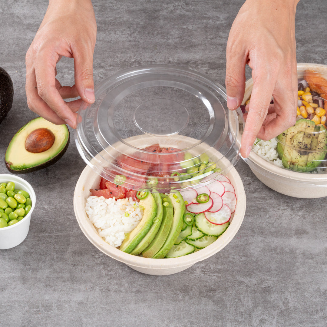 ROUND CLEAR PLASTIC FLAT LID - FITS BAGASSE TO GO BOWL