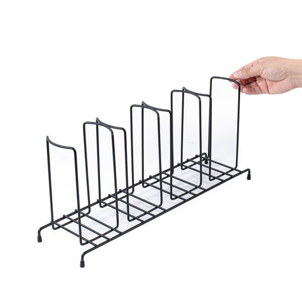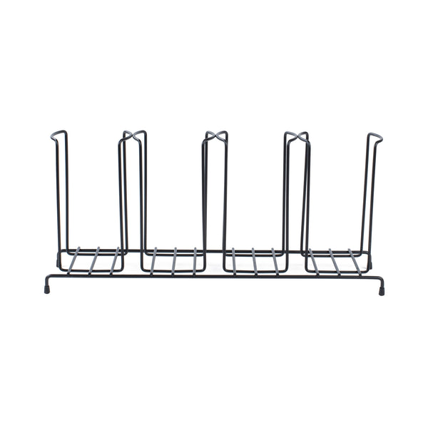 Enhance beverage station efficiency with a streamlined cup and lid display. The Restpresso Four-Section Space-Saving Cup and Lid Display combines four sections that organize cups and lids efficiently, reducing clutter and speeding up service. Crafted from durable black iron, this iron condiment holder withstands daily use in high-traffic foodservice settings, ensuring longevity and reliability. Its compact dimensions of 18.5 inches in length, 8.5 inches in width, and 5 inches in height allow it to fit neatly on countertops, maximizing space without sacrificing functionality. The sleek black finish of this wire cup and lid caddy adds a modern, professional aesthetic to any beverage station, enhancing overall presentation. Perfect for coffee shops and self-service stations, it offers quick access to drinkware, improving workflow. Streamline operations with this versatile cup and lid display. Each order includes 1 Restpresso Four-Section Space-Saving Cup and Lid Display.