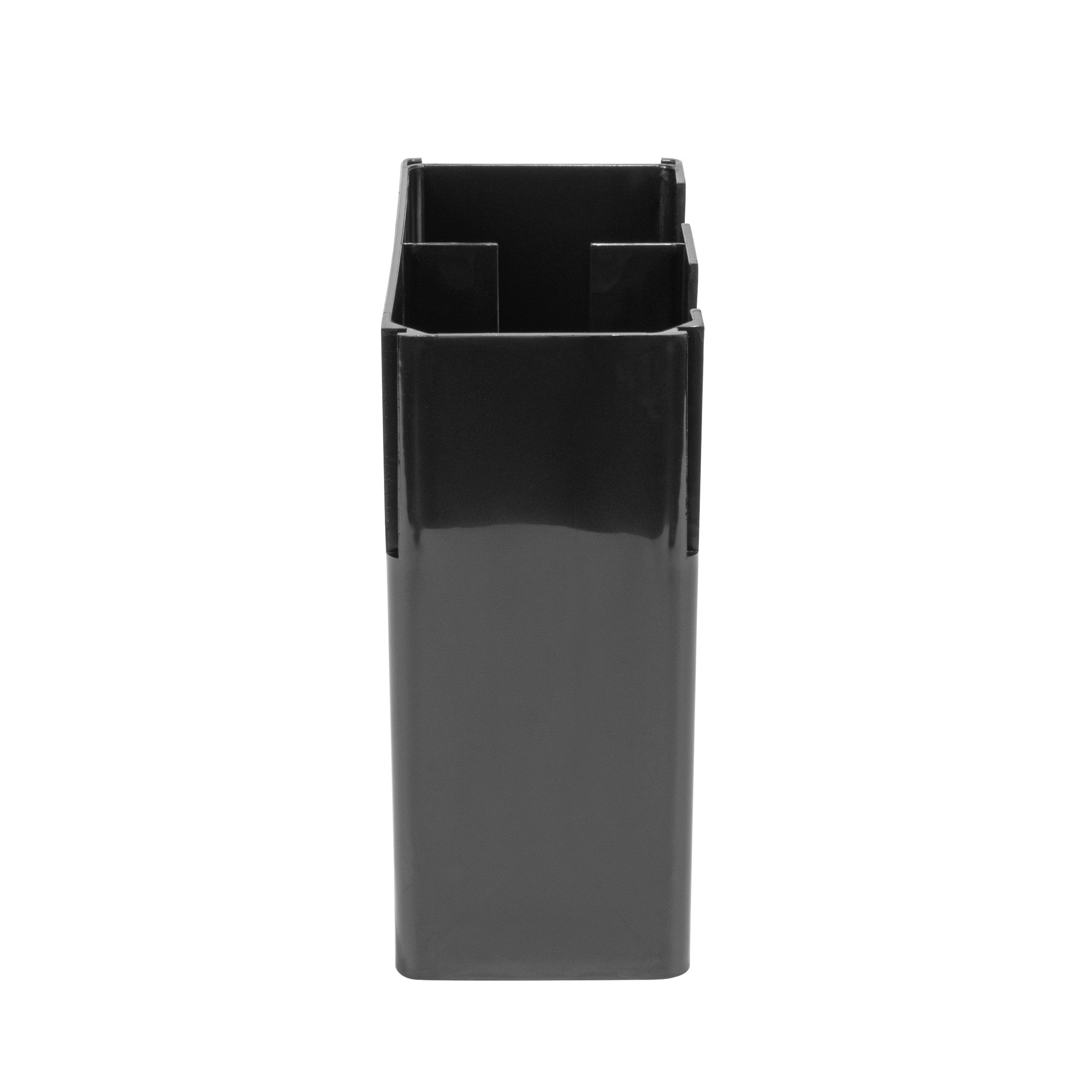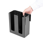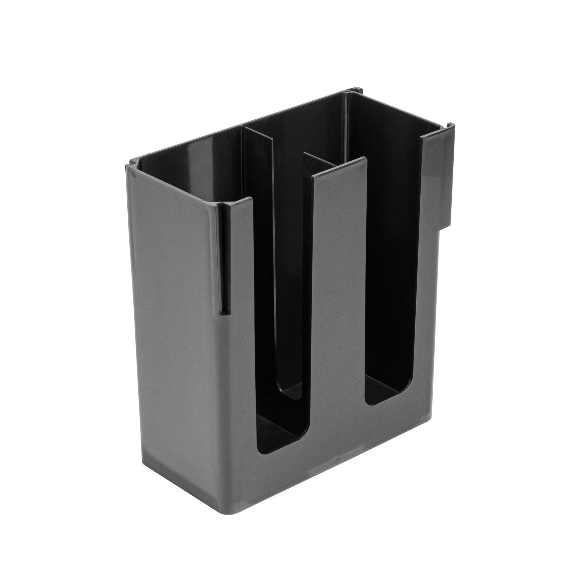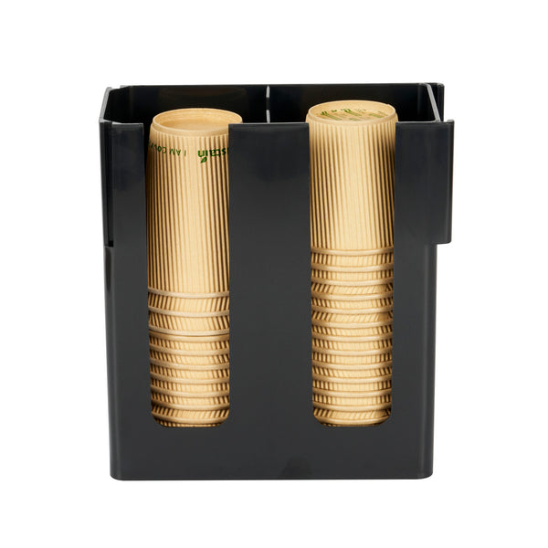 Streamline your coffee station with our Restpresso Black Plastic Coffee Cup / Lid Organizer, designed to elevate organization and efficiency. This coffee organizer features 2 compartments, expertly crafted to keep lids and coffee cups neatly arranged and easily accessible for staff and customers alike. With its open design, this countertop organizer allows staff to monitor supply levels effortlessly, ensuring your beverage station never runs out during peak hours. Made from premium plastic, this durable coffee caddy provides reliable, long-lasting storage for all your beverage supplies. Designed to maximize efficiency, this compact plastic organizer fits seamlessly into any space without taking up too much room, making it a perfect addition to busy foodservice environments. The sophisticated black finish of this plastic coffee organizer adds a touch of elegance, effortlessly complementing any coffee station setup. Measuring 9.06 inches in length by 4.33 inches in width by 9.45 inches in height, this organizer is perfectly sized for optimal use in any setting. Sold in a 1 count box.