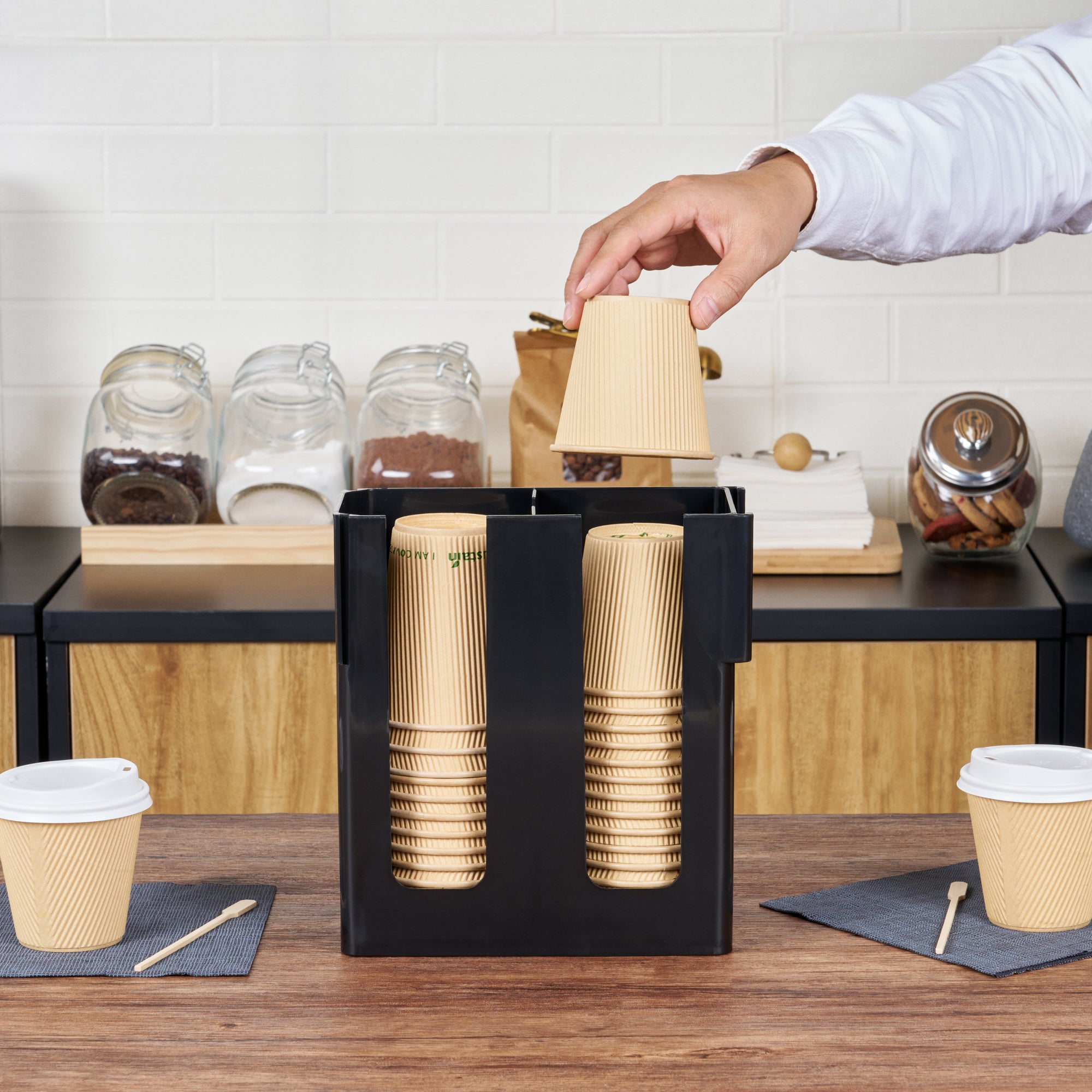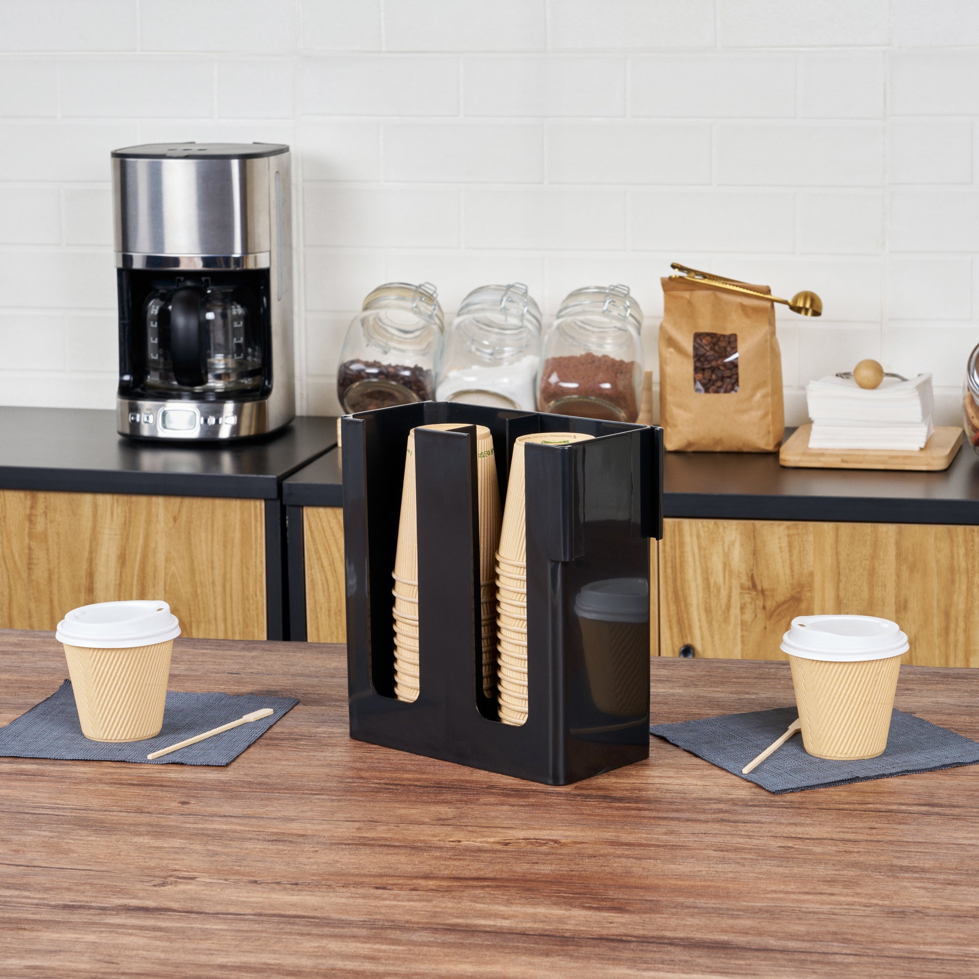 - Premium black finish enhances elegance of any coffee station layout