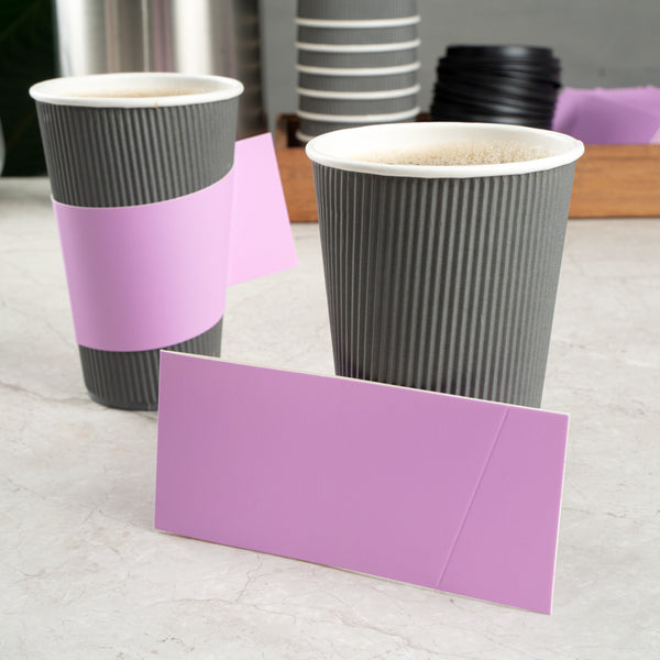 Enhance customer comfort with a secure grip and stylish presentation. The Restpresso Secure Grip Coffee Sleeve with Handle, 11.25 inches by 2.5 inches by 2.5 inches, in Lavender Purple, elevates your beverage service by offering a safe, comfortable hold with its integrated handle, minimizing spill risks. This disposable cup holder is crafted from premium paper that insulates hands from hot drinks, making it an ideal choice for busy coffee shops. Its versatile fit across 12, 16, and 20-ounce cups streamlines inventory while accommodating diverse drink menus, a critical advantage for cafes and catering events. Elevate your beverage presentation while supporting sustainability initiatives. Each order includes 1000 Restpresso Secure Grip Coffee Sleeves with Handle.