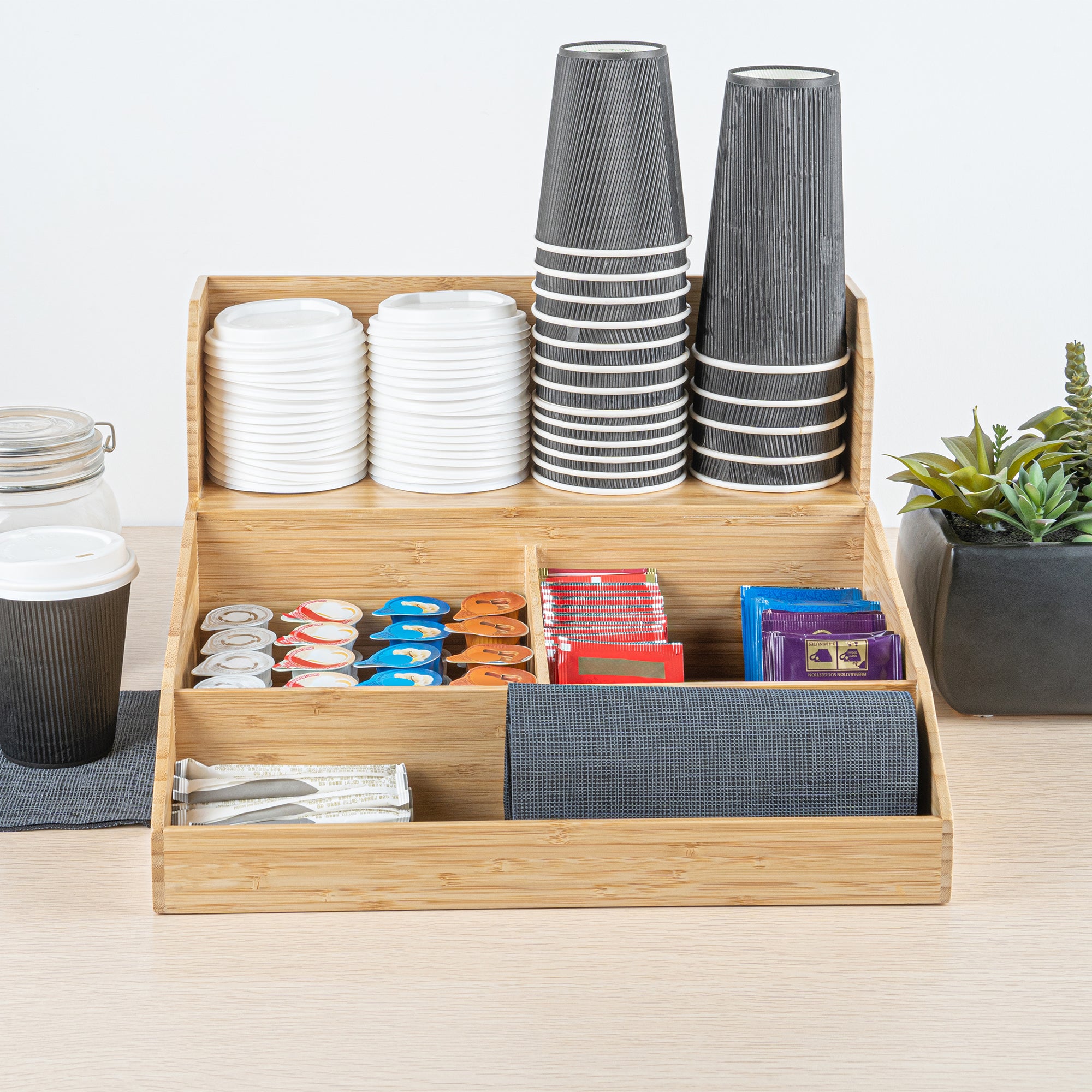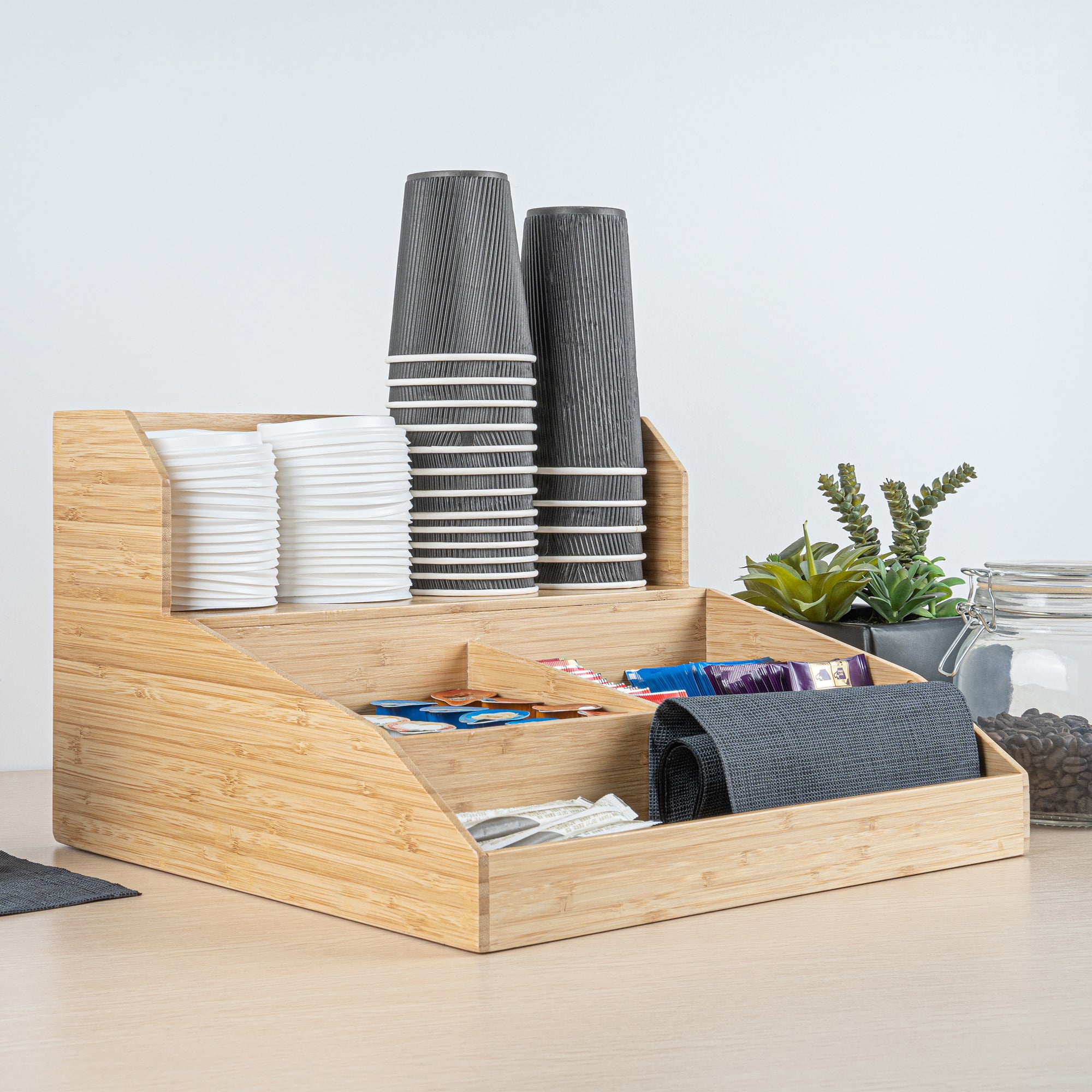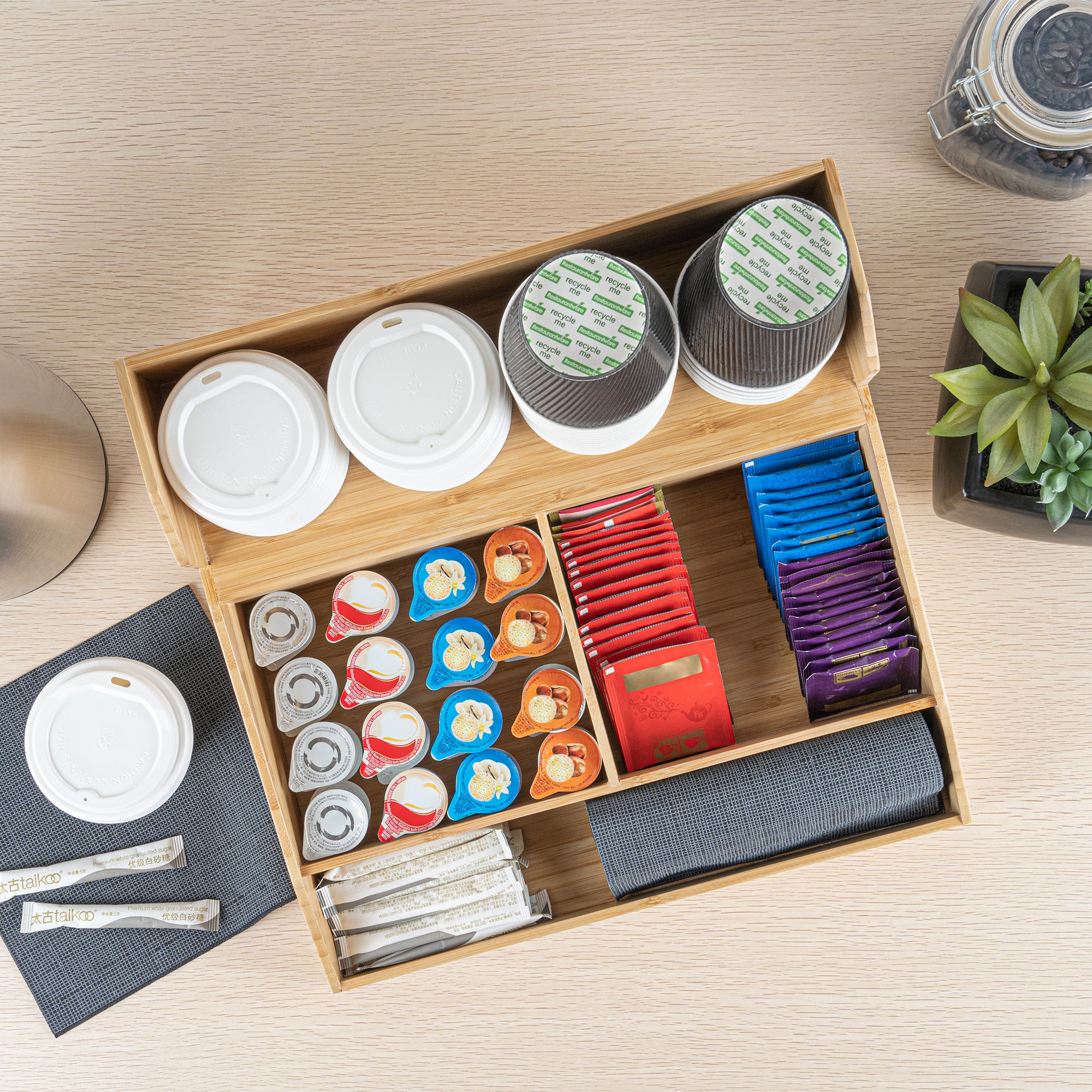 NATURAL BAMBOO CONDIMENT / COFFEE CUP / LID ORGANIZER