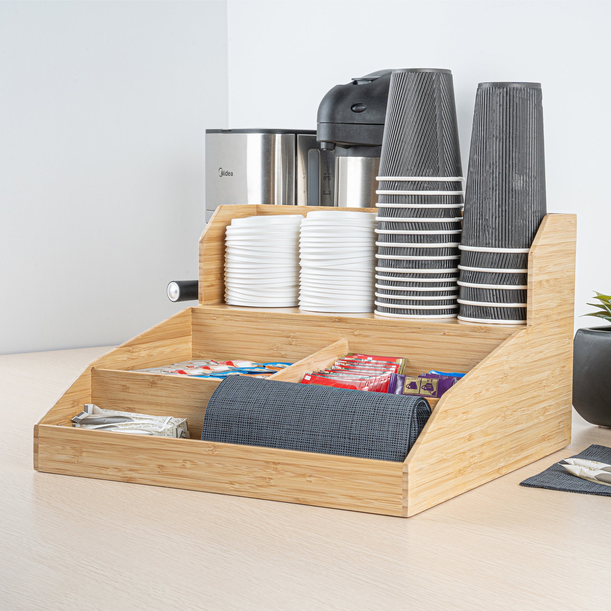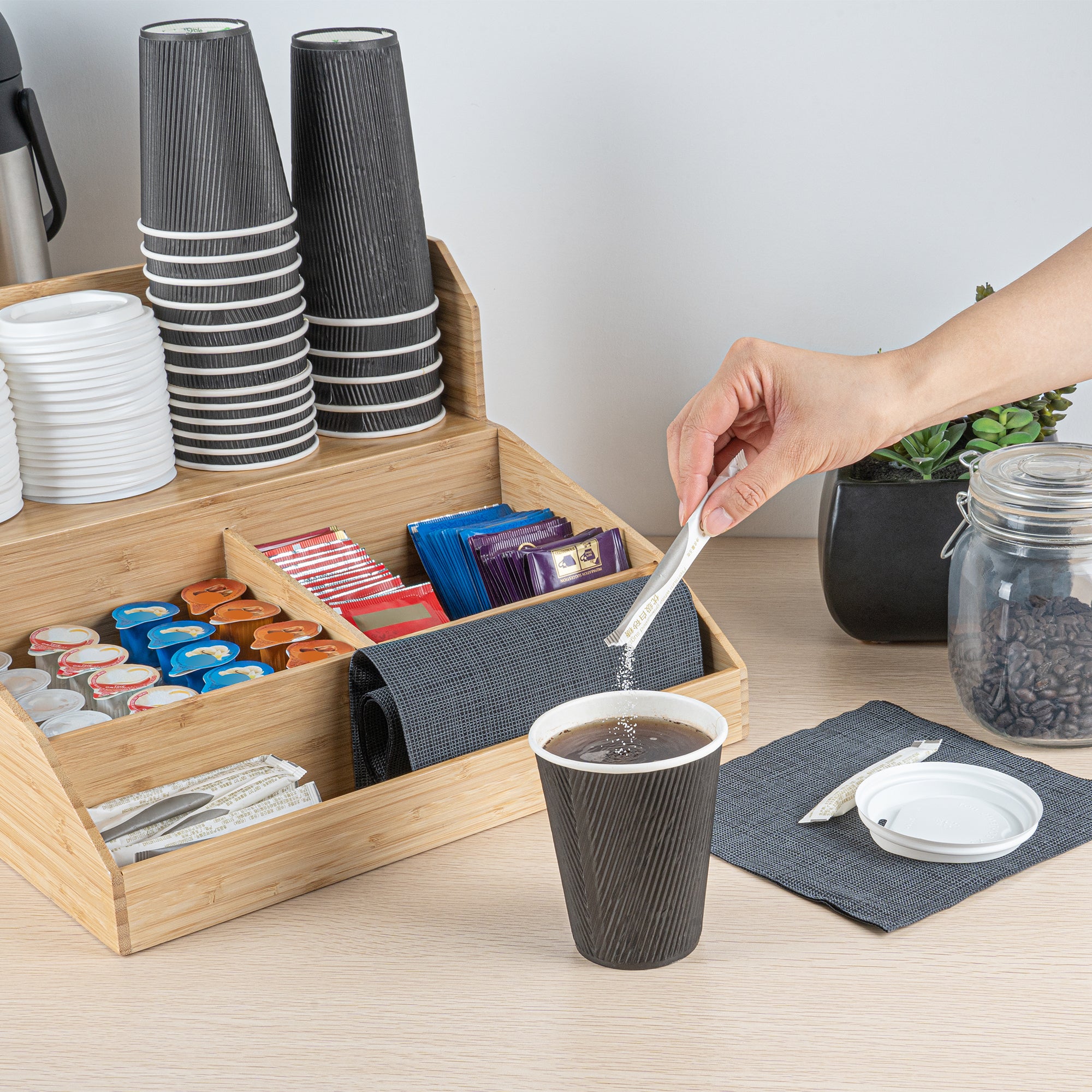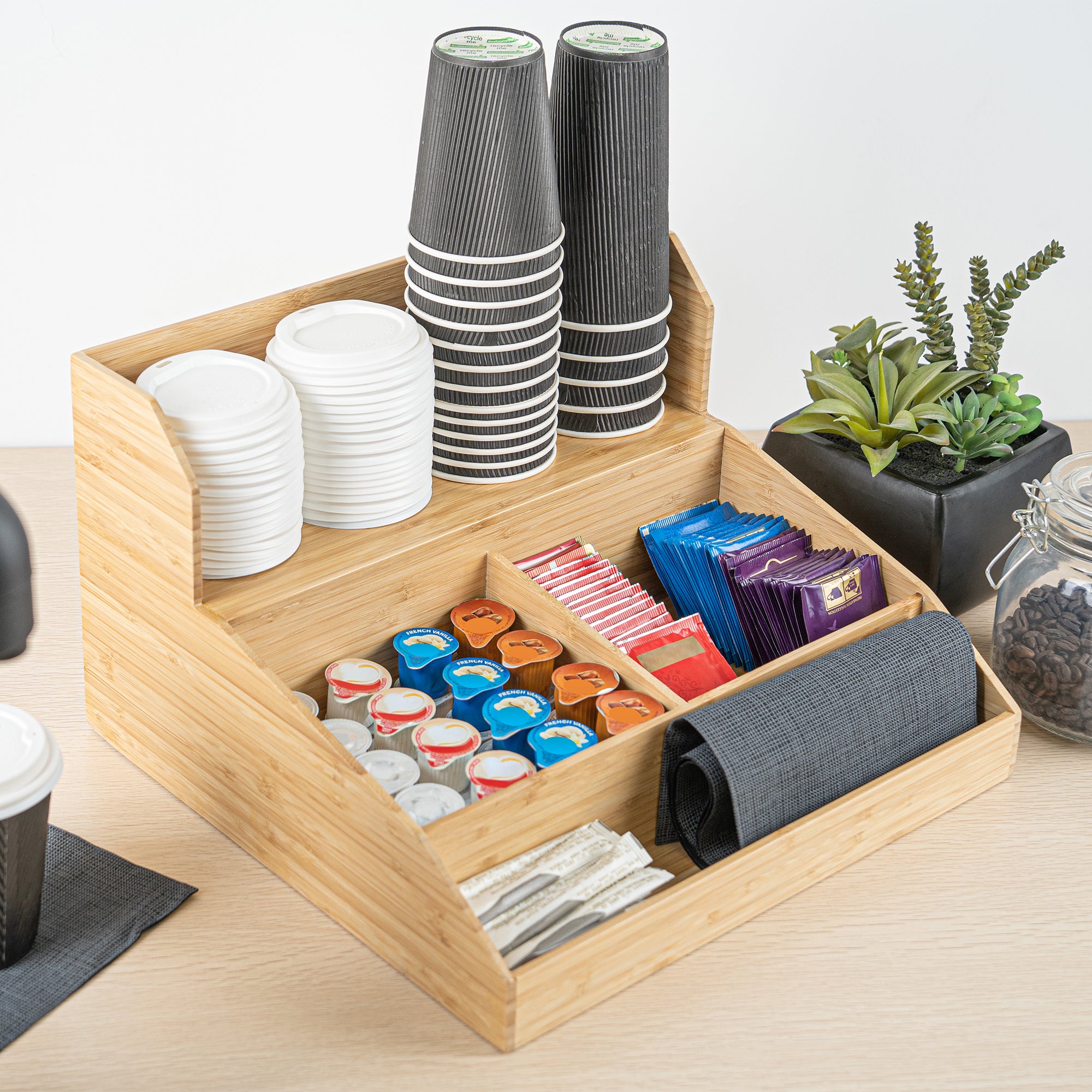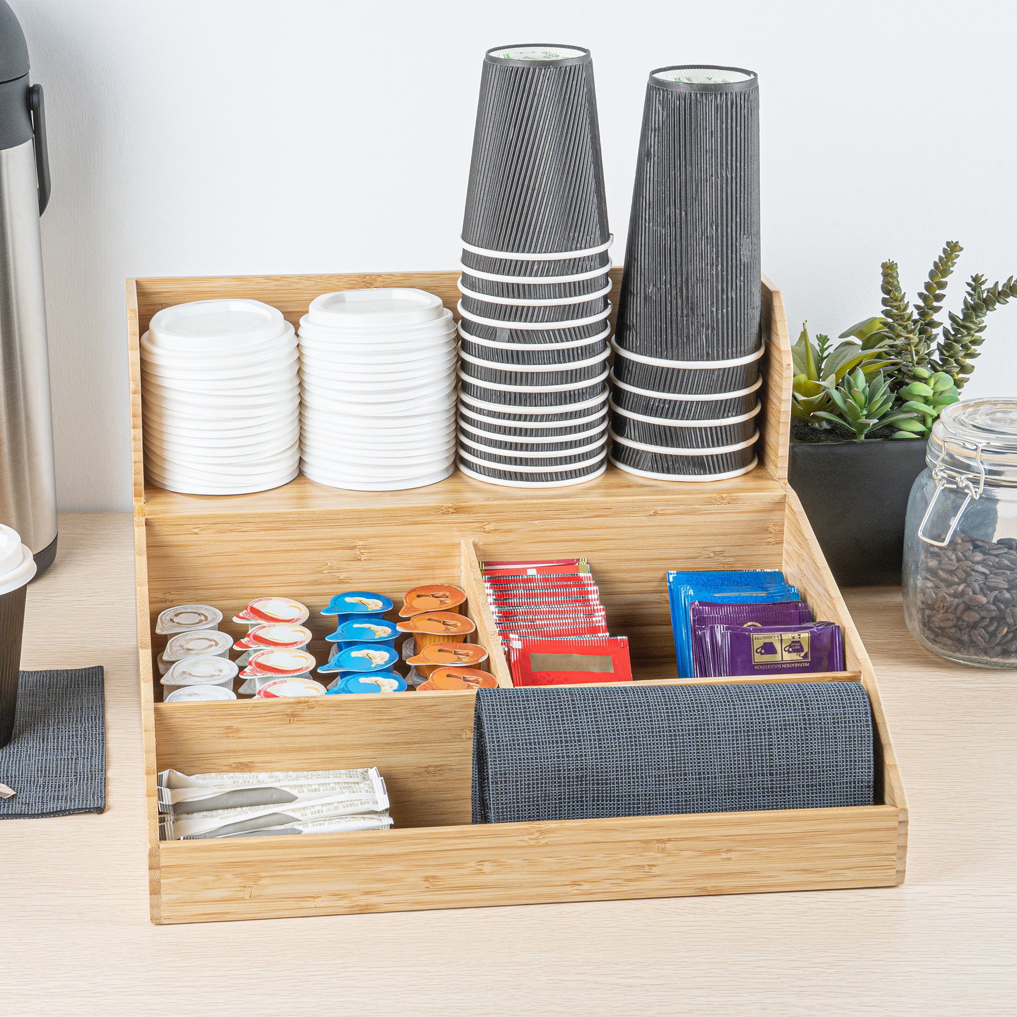 NATURAL BAMBOO CONDIMENT / COFFEE CUP / LID ORGANIZER