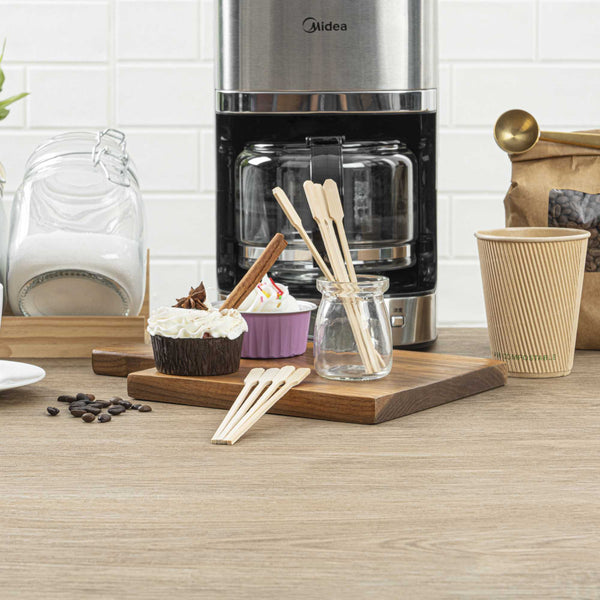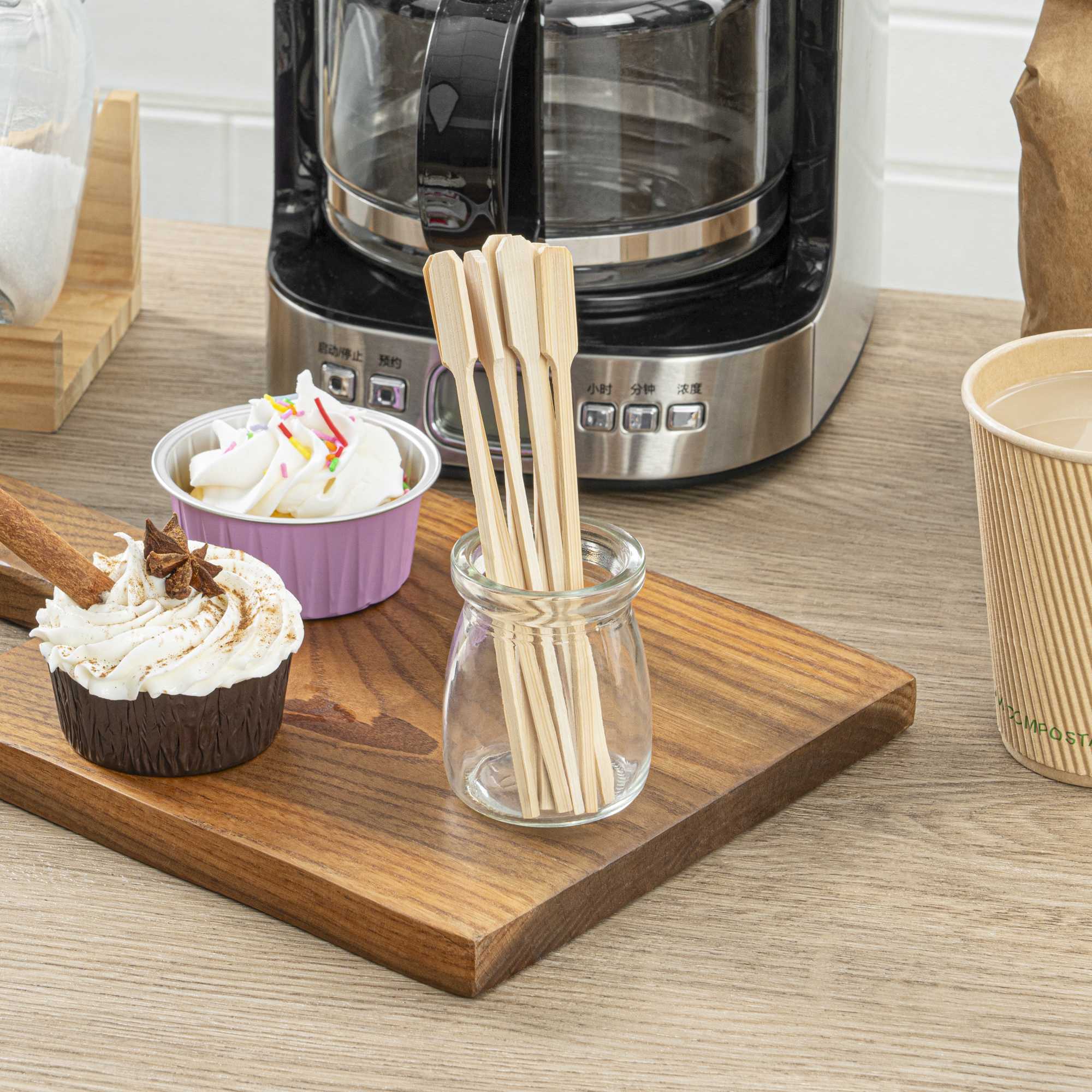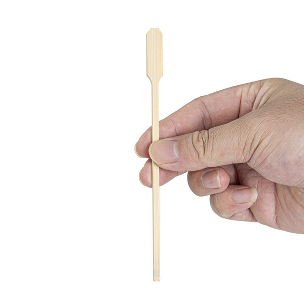Provide the perfect addition to your coffee station with our Restpresso Natural Bamboo Paddle Coffee Stirrer. These high-quality stirrers have a paddle handle, which is comfortable to hold while stirring both hot and cold drinks. Made from premium bamboo, these recyclable coffee stirrers are durable and don't get flimsy. These coffee swizzle sticks are suitable for hot and cold beverages. The smooth finish ensures that they won't splinter or snap during use. To reduce your carbon footprint, these bamboo swizzle sticks are biodegradable. These bamboo coffee stirrers measure 6 inches in length, making them ideal for all kinds of cups. Shipped in a 1000 count box, making them a great choice for hotels, restaurants, and bars. This item will only degrade outside of the traditional solid waste stream.