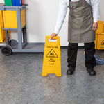 YELLOW PLASTIC CAUTION WET FLOOR SIGN - DOUBLE-SIDED