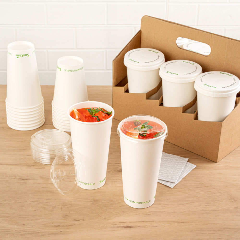 These cold cup lids perfectly match our 9-, 12-, 16-, 20-, and 22-ounce Sustain cold cups. Keep your drinks fresh and without spilling!