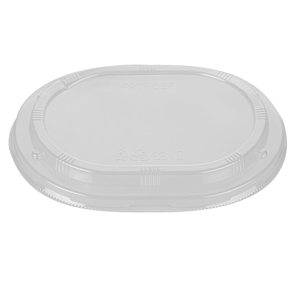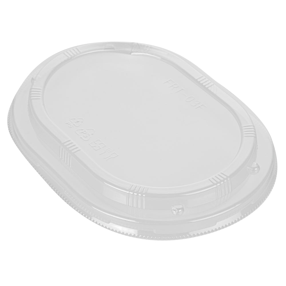Ensure the safe delivery of your food with our Taipei Clear Plastic Lids. Manufactured using premium plastic material, these food container lids offer long-lasting strength and durability. Pair these transparent lids with their compatible containers (SKU: RWB0384) to keep food securely contained during transit. These durable plastic lids feature an elevated roof design to provide ample room for food and various topping. The transparent finish of these plastic lids allows quick identification of contents without the need to unseal. These clear plastic lids are recyclable to ensure a swift and sustainable disposal. Each disposable oval plastic lid measures 7.75 inches long by 6 inches wide by 0.75 inches tall. Shipped in a 100 count box. Containers are available and sold separately.